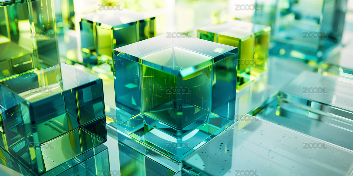 抽象绿色方块晶体结构城市建筑3D立体插画