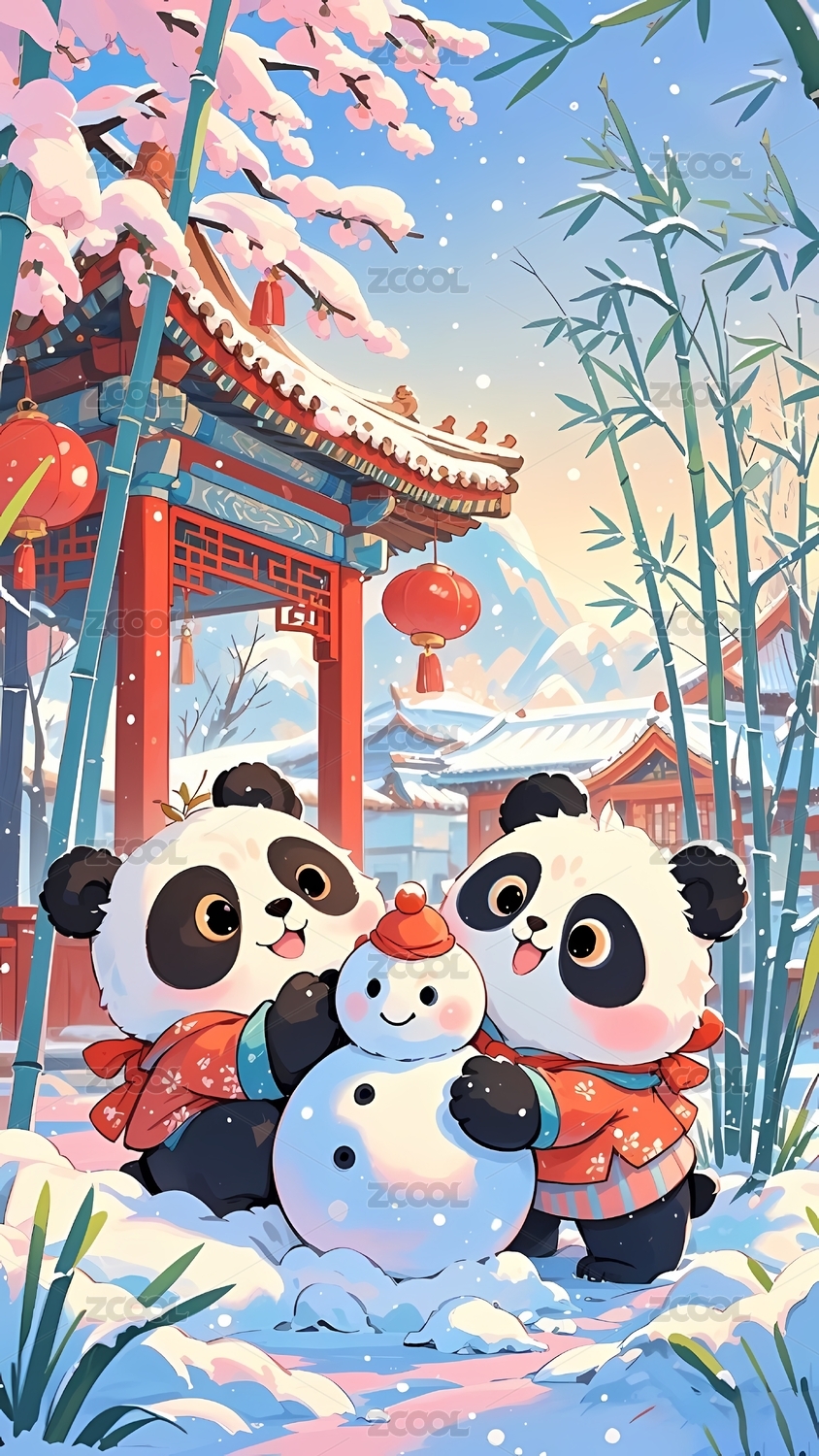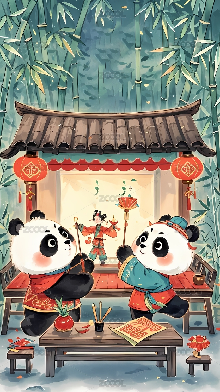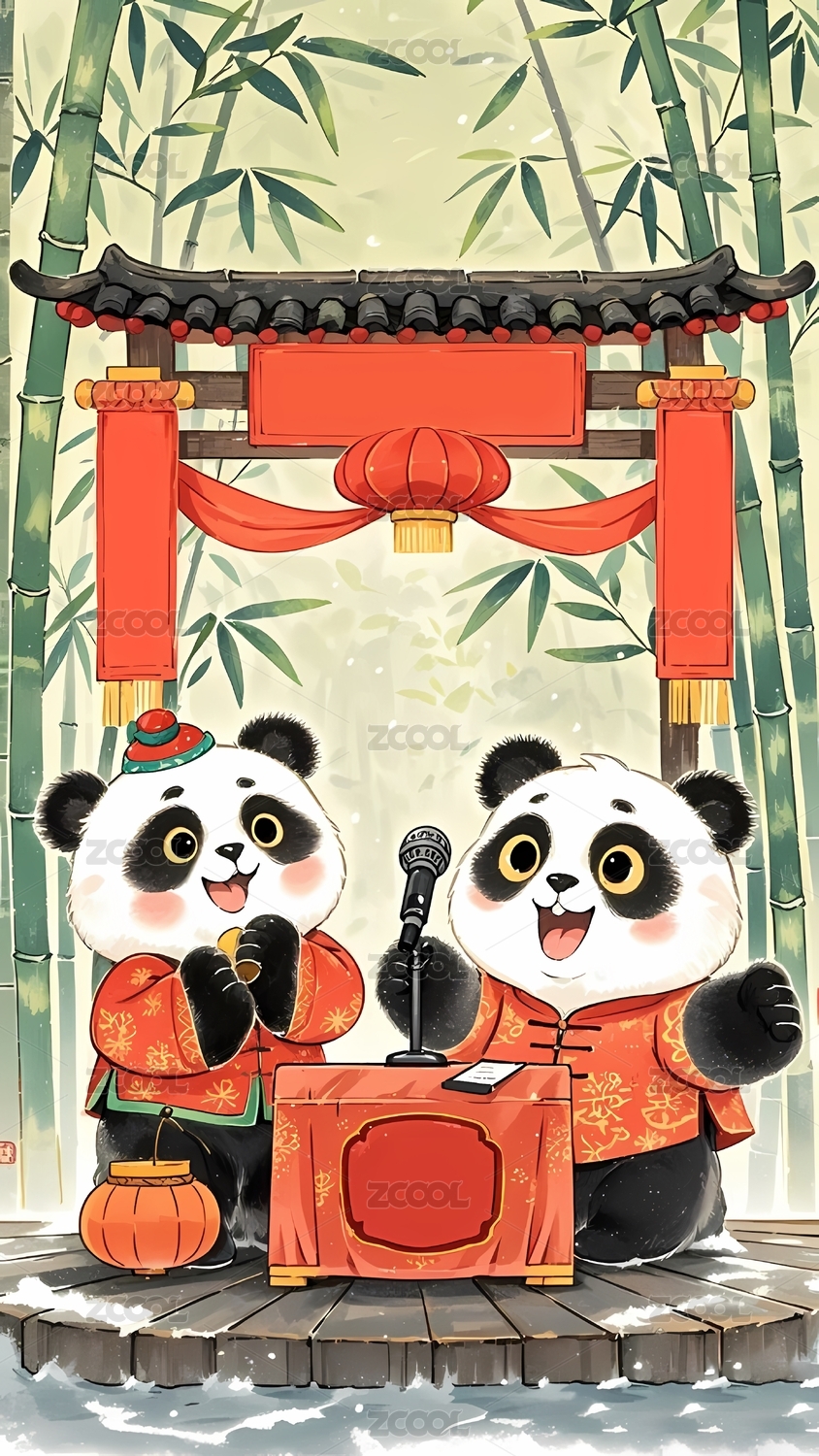 熊猫,国宝,中国风,新年,春节,团圆,年夜饭,美食,卡通,可爱