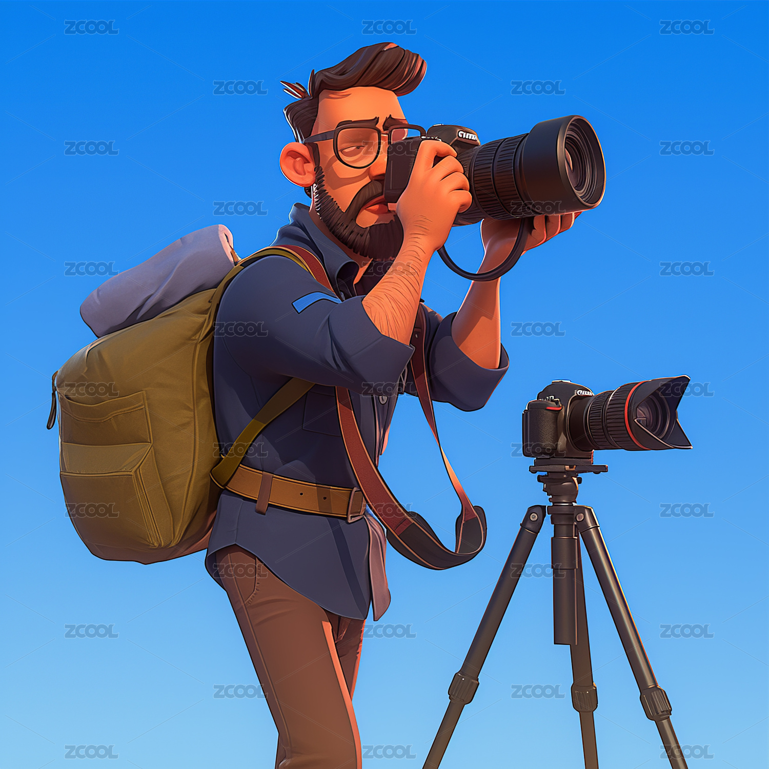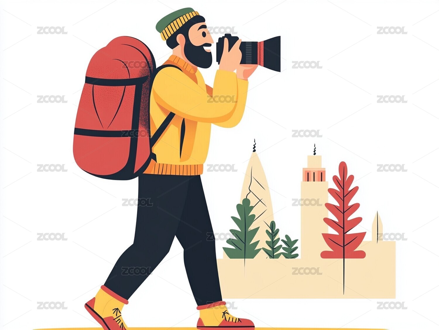 人物,插画,平面,扁平,色块,极简风,手绘,纯色背景,摄影师,相机