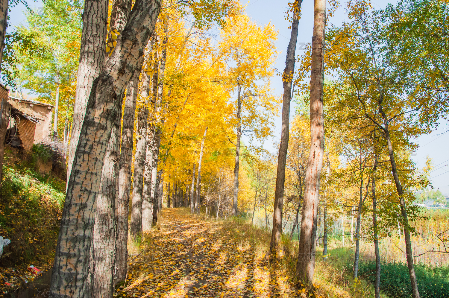 秋天的山路美景,深秋午后阳光洒在环山道路上