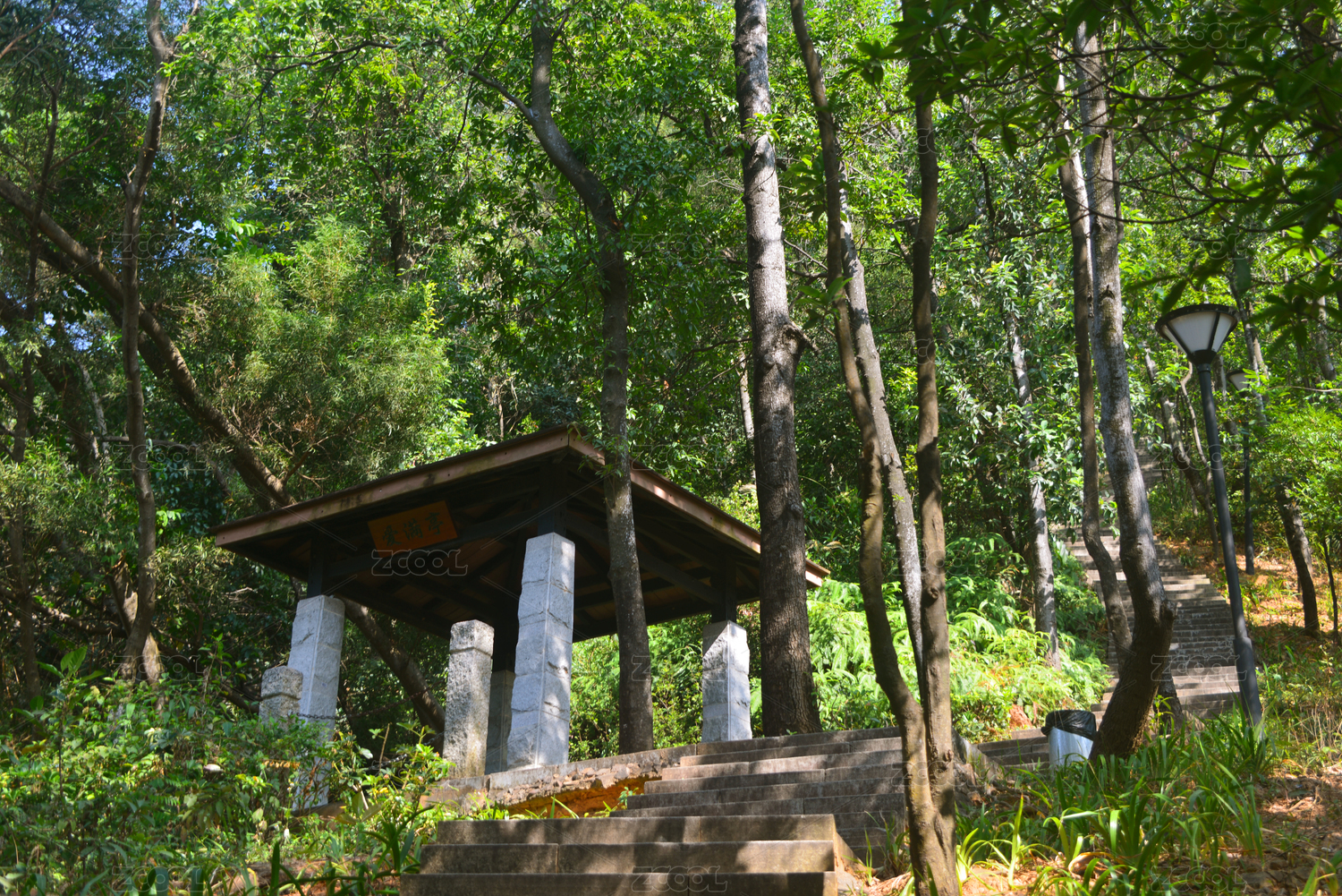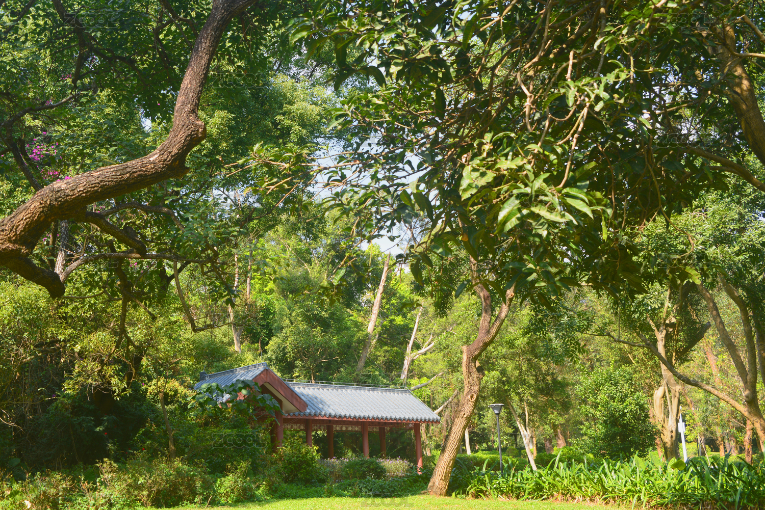 深圳笔架山公园 树林林荫下的传统风雨廊