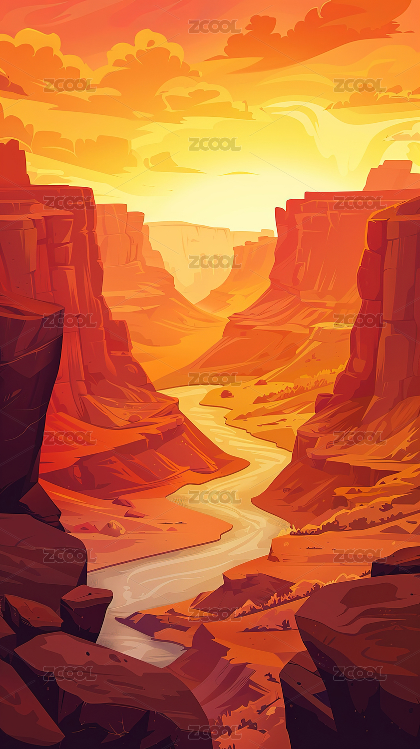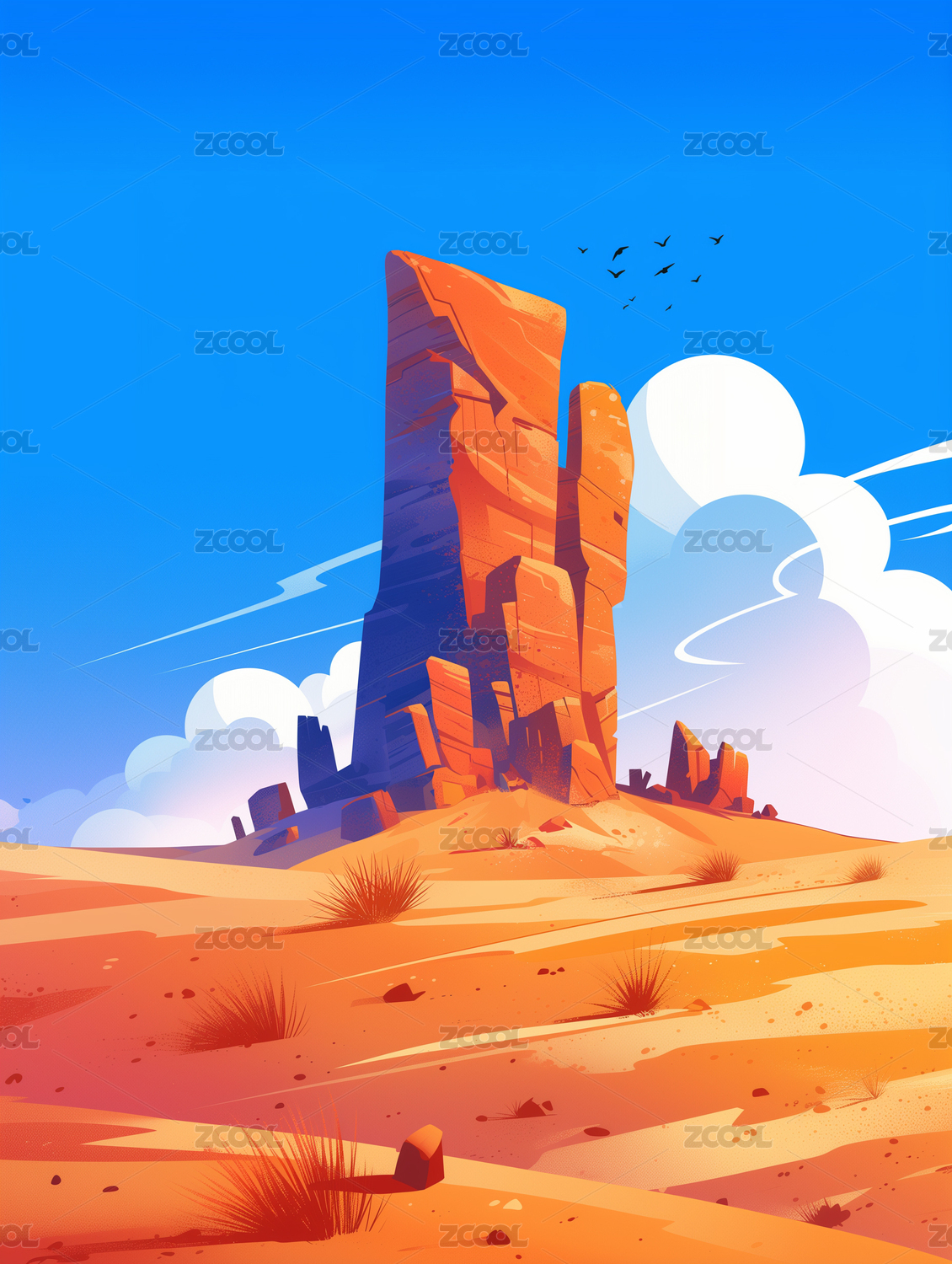 数码沙漠仙人掌沙丘插画抽象海报背景