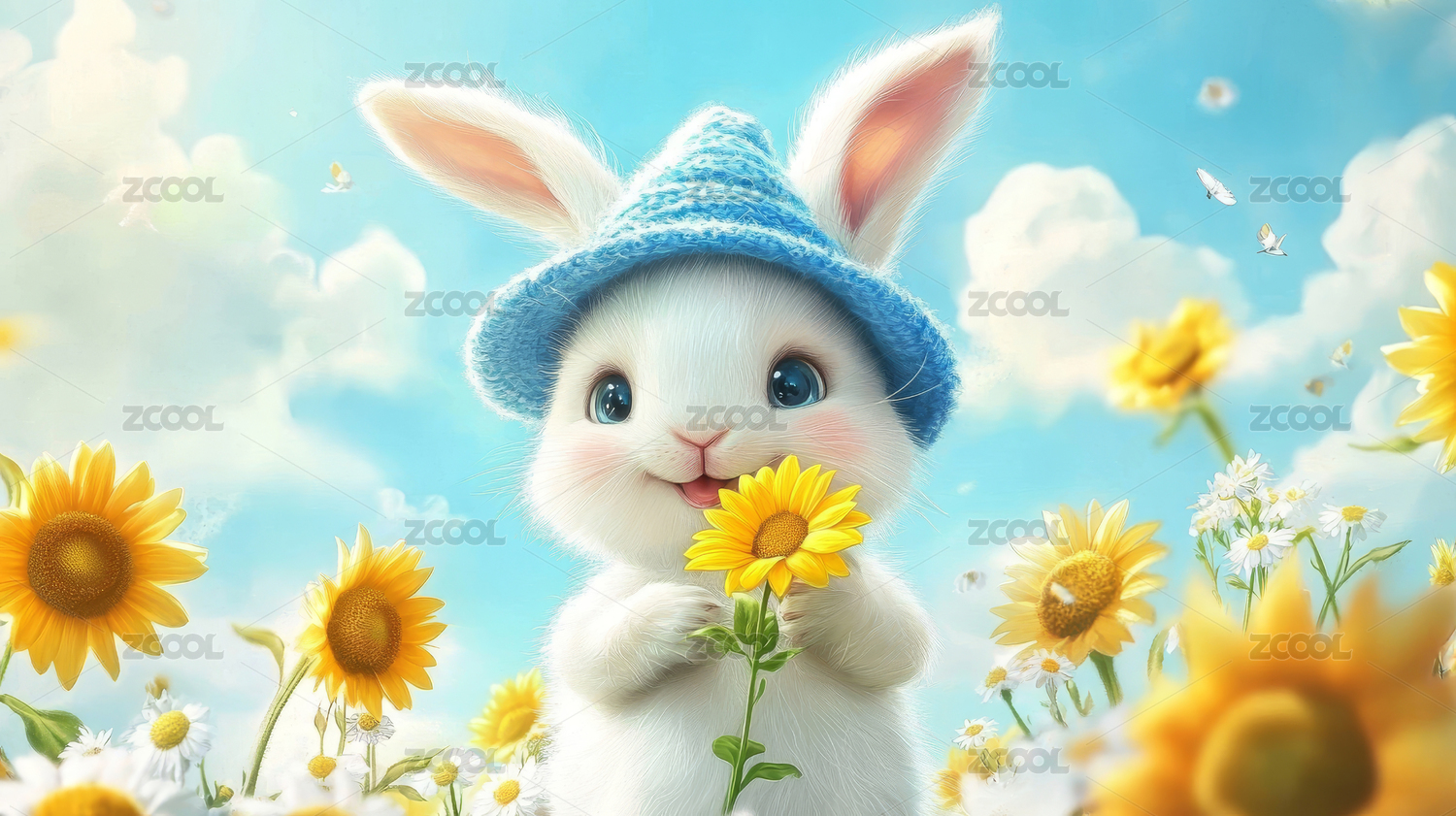 一只小兔子在黄昏的草丛中,3D卡通插画