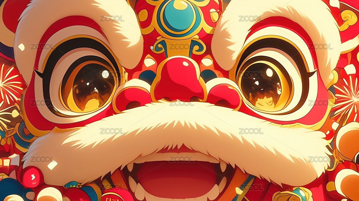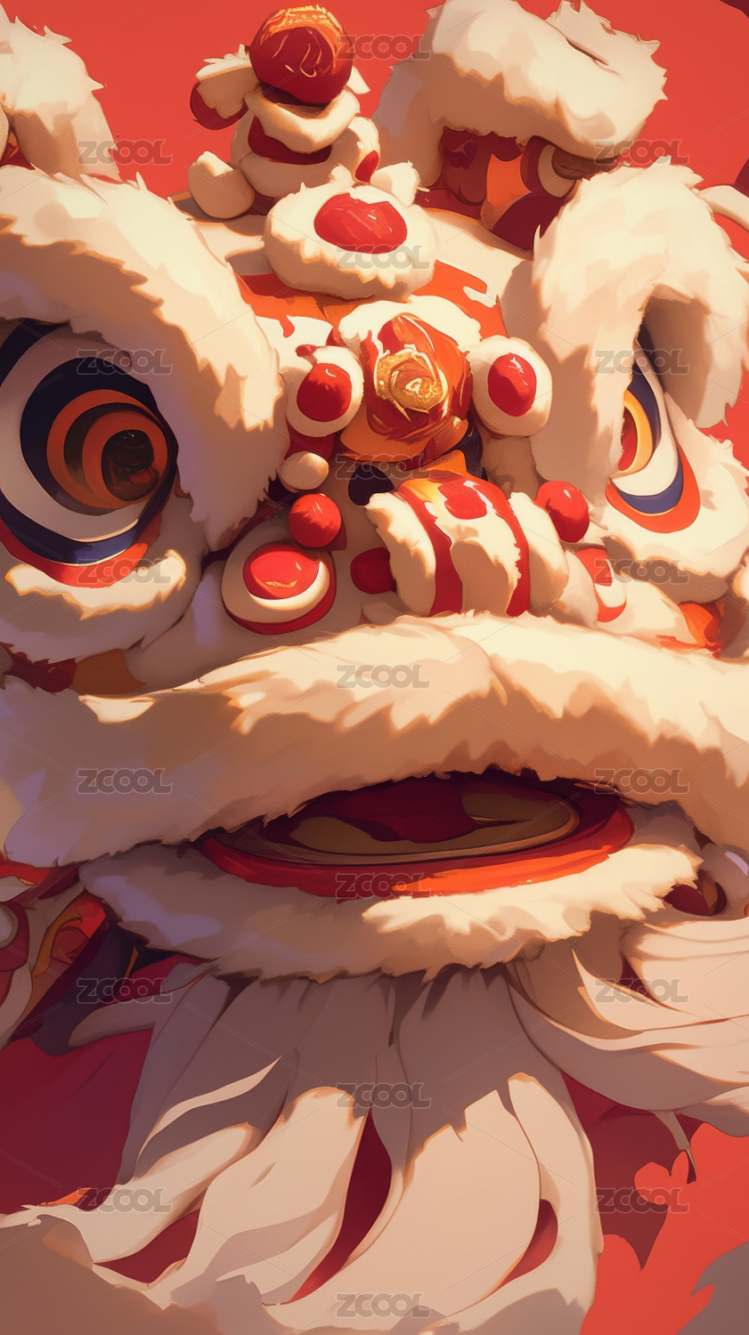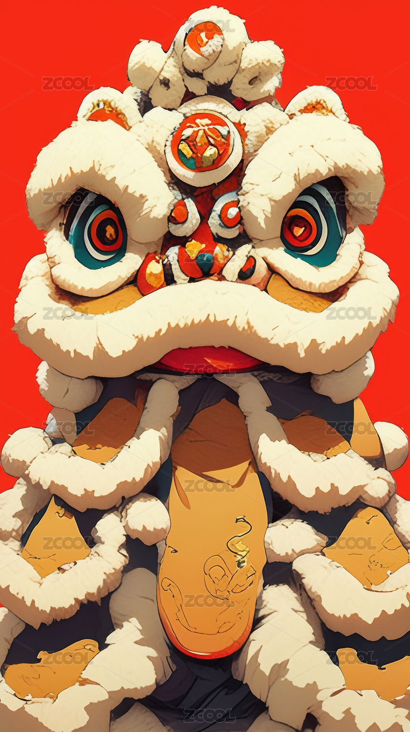 插画,中式,国潮,国风,背景,单独,舞狮,醒狮,狮舞,狮子舞