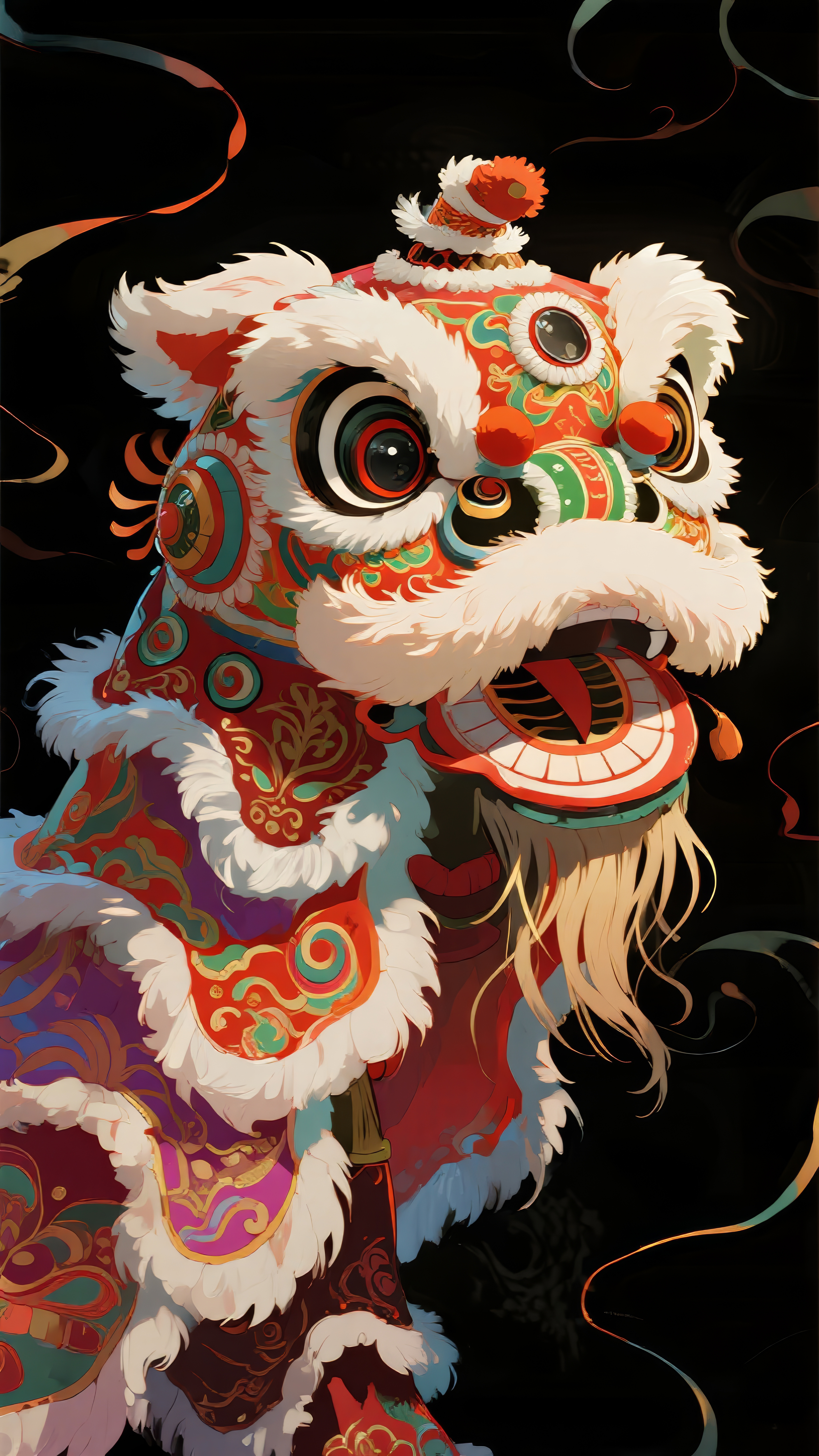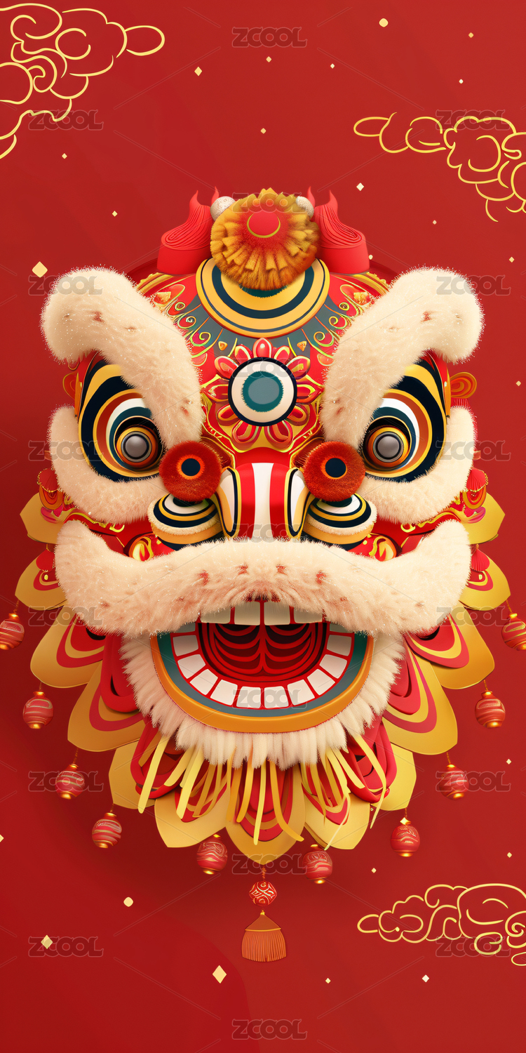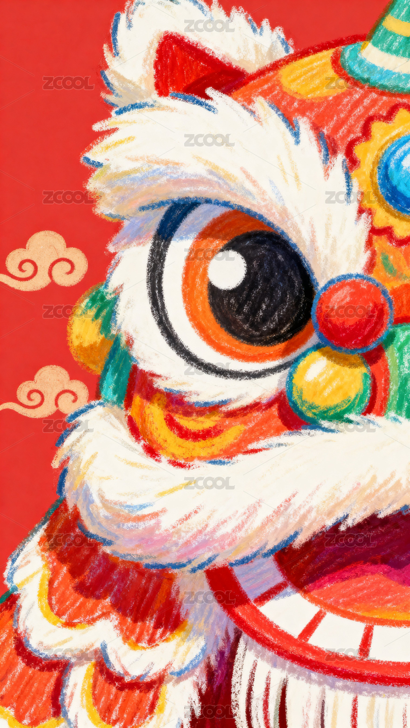 插画,中式,国潮,国风,背景,单独,舞狮,醒狮,狮舞,狮子舞