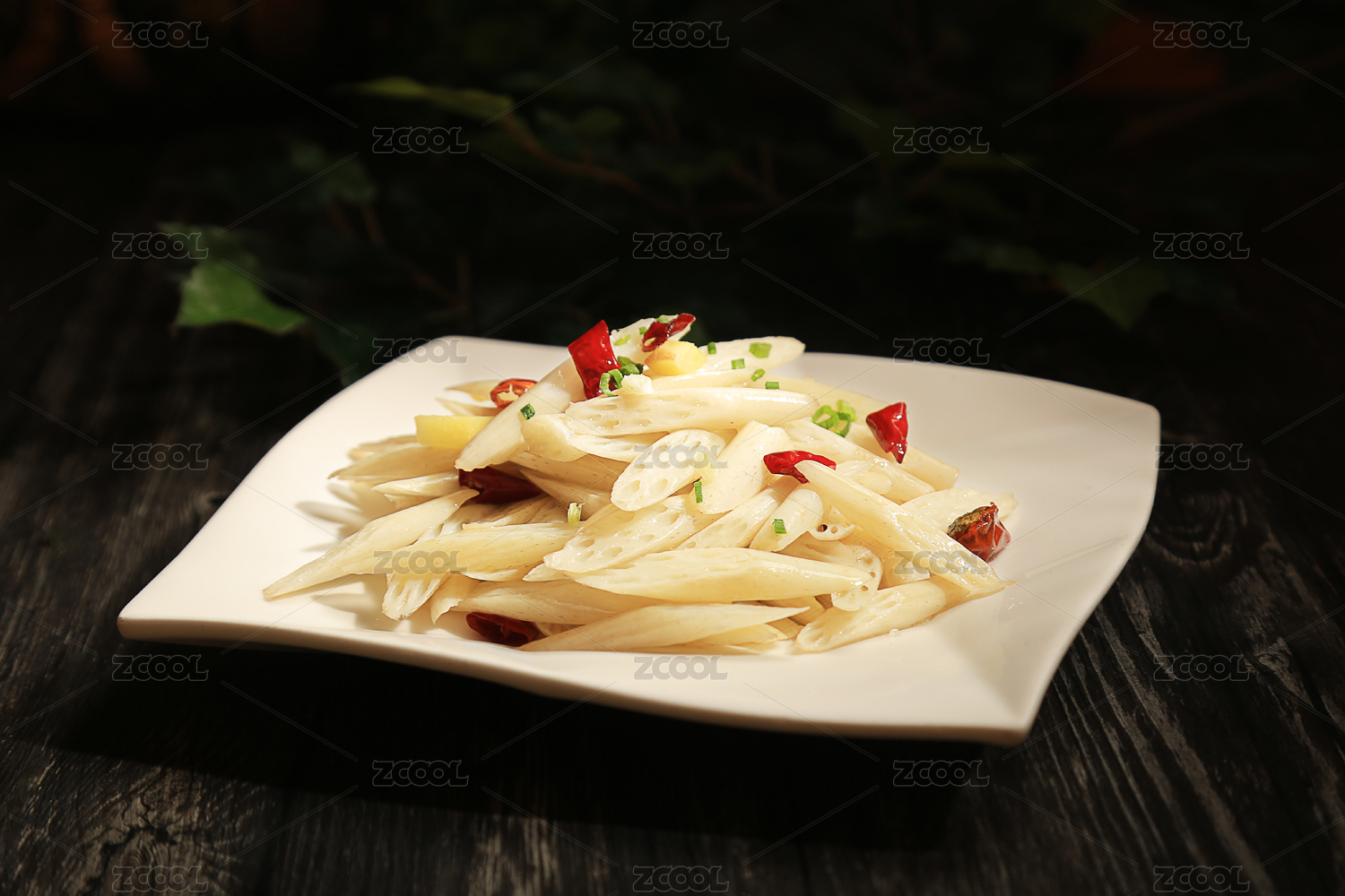 美味的家常菜腐竹烧肉盛放在白色的瓷器盘中
