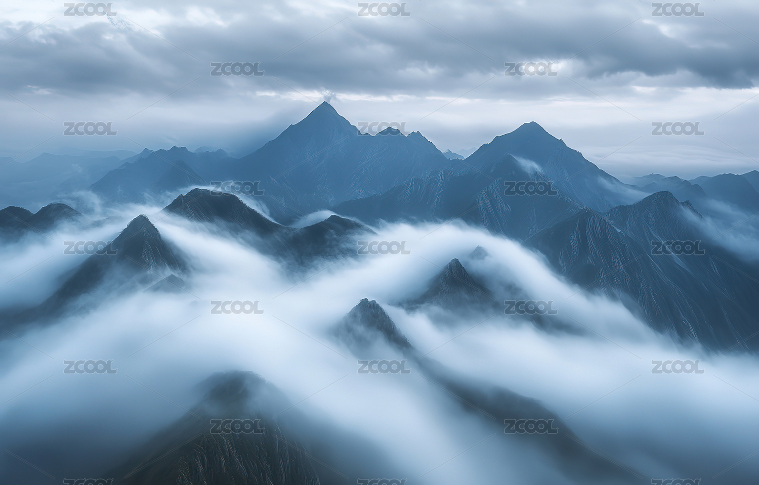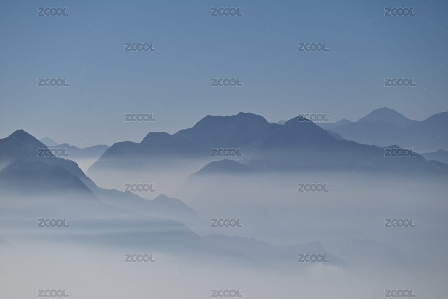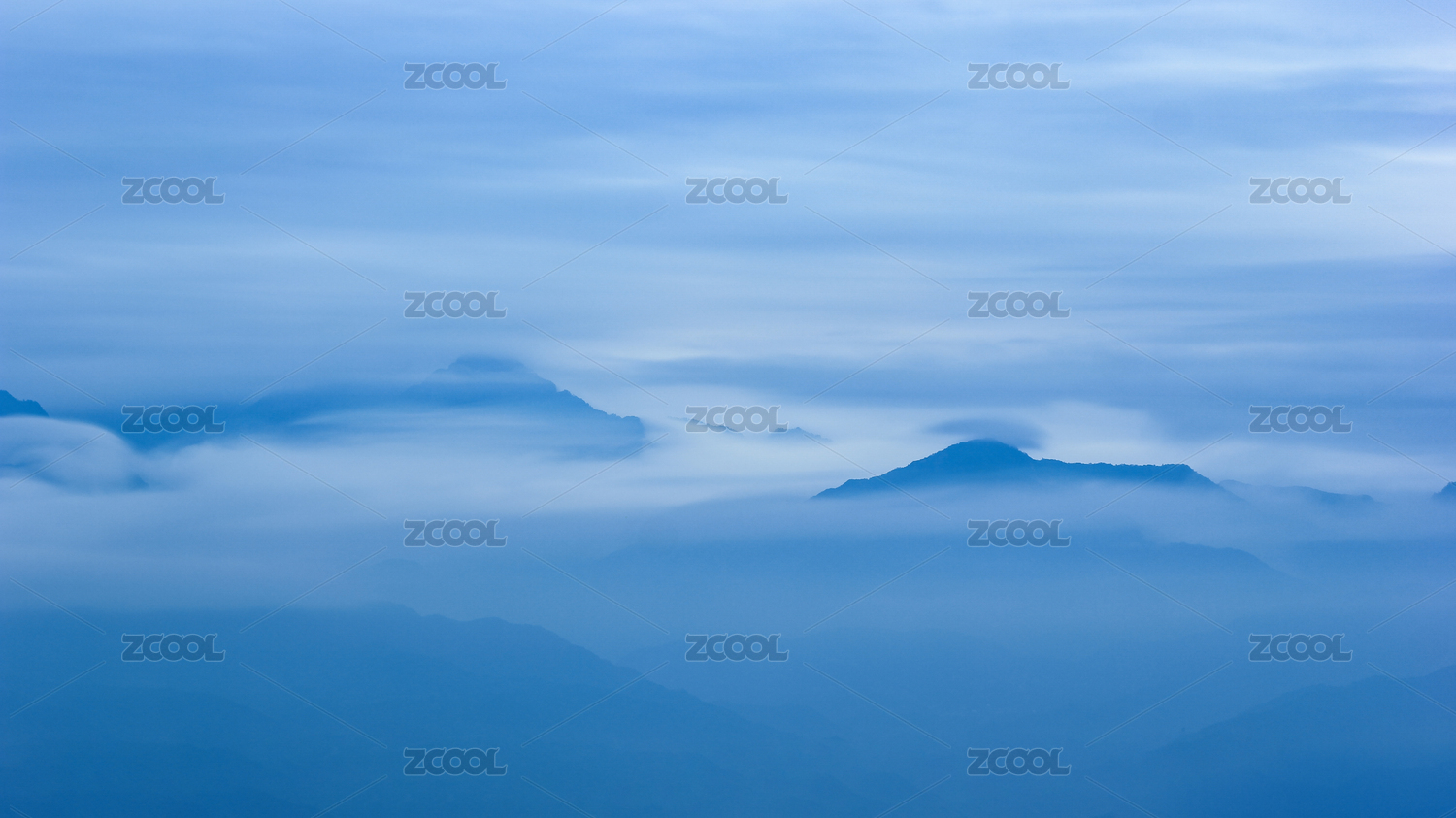 山,山谷,云,雾,流动,雾霭,蓝色,晨雾,华尖山,泸定县