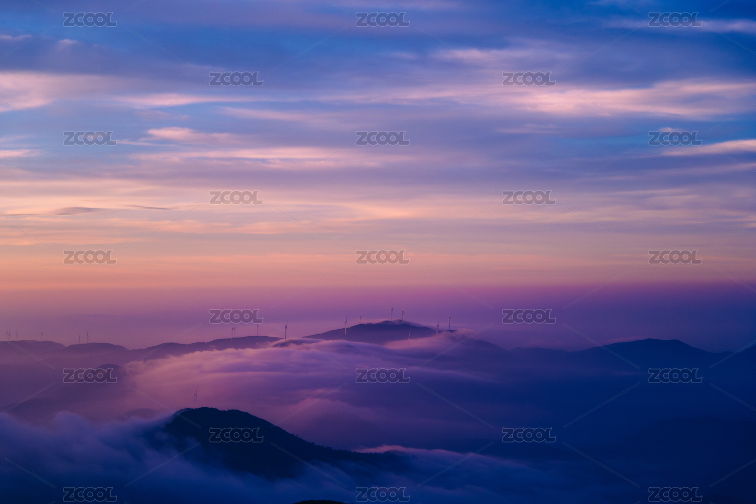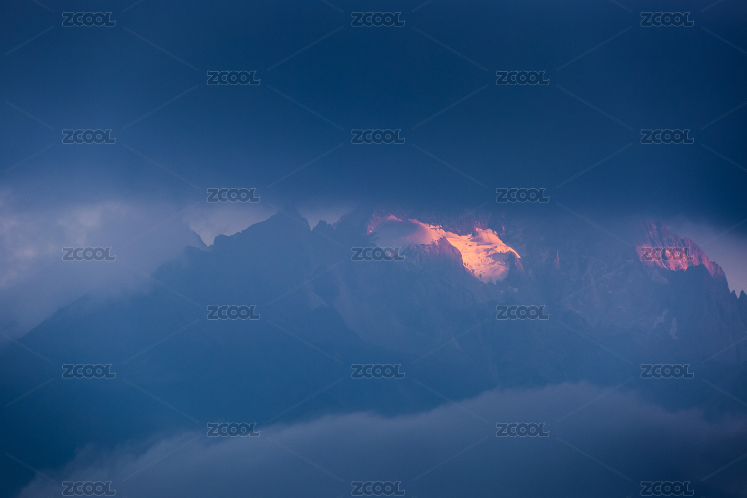 中国四川省贡嘎山间流淌的云海在曙光的照耀下流光溢彩