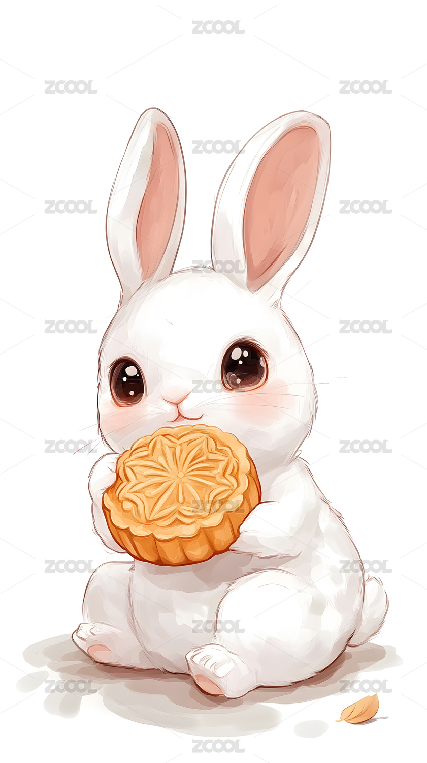 兔子,可爱,动物,月饼,中秋节,插画,食物,元素,卡通,AIGC202403