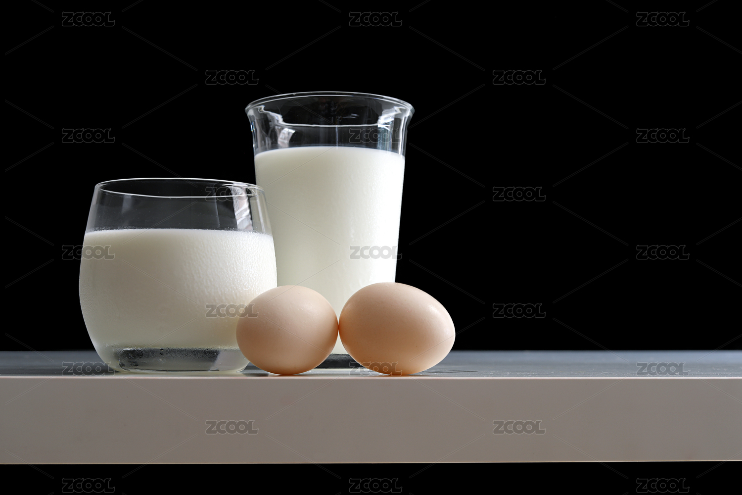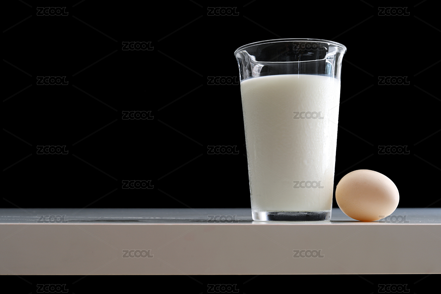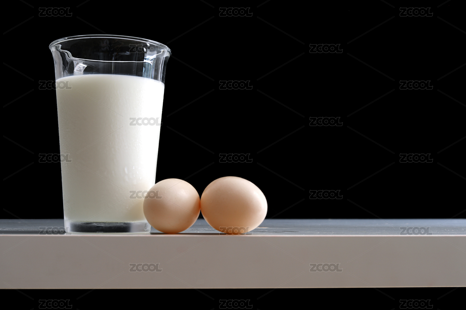 白色桌面上的儿童营养早餐蛋白质鸡蛋牛奶