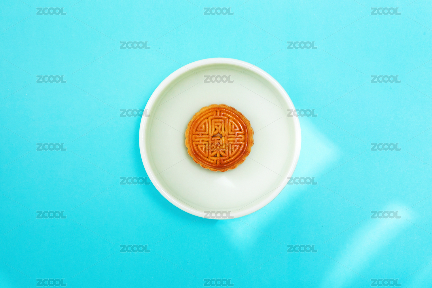 青底上白色餐盘里盛装的中秋月饼