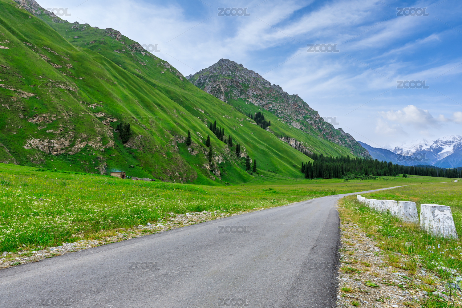 新疆下塔风景区雄伟的山脉和绿色的草原风光