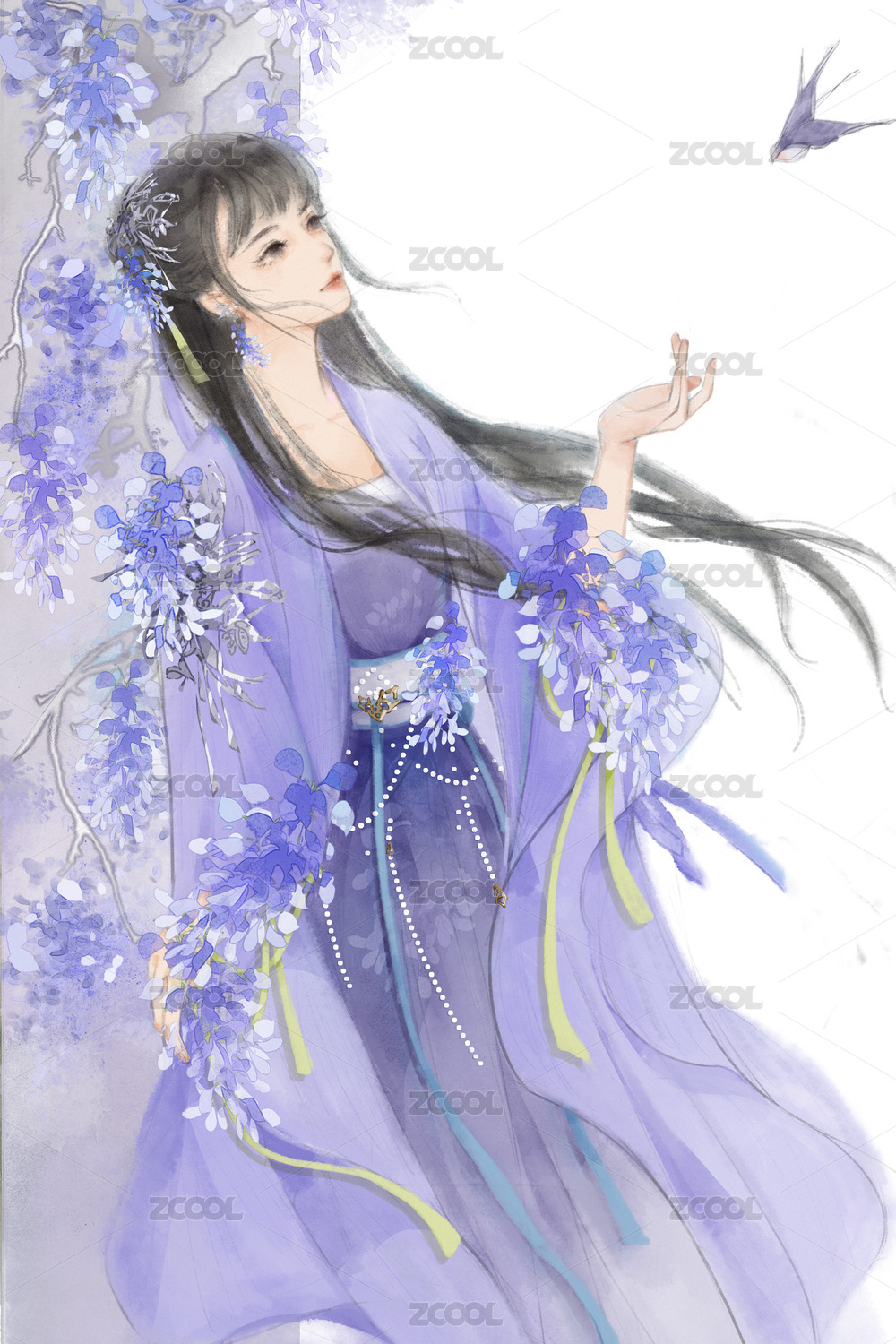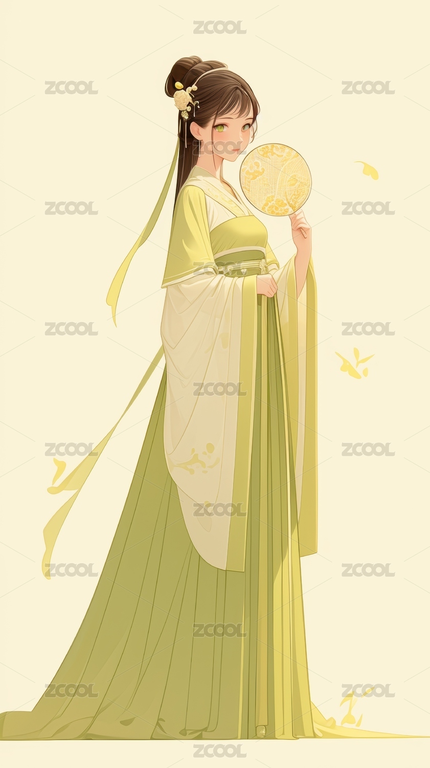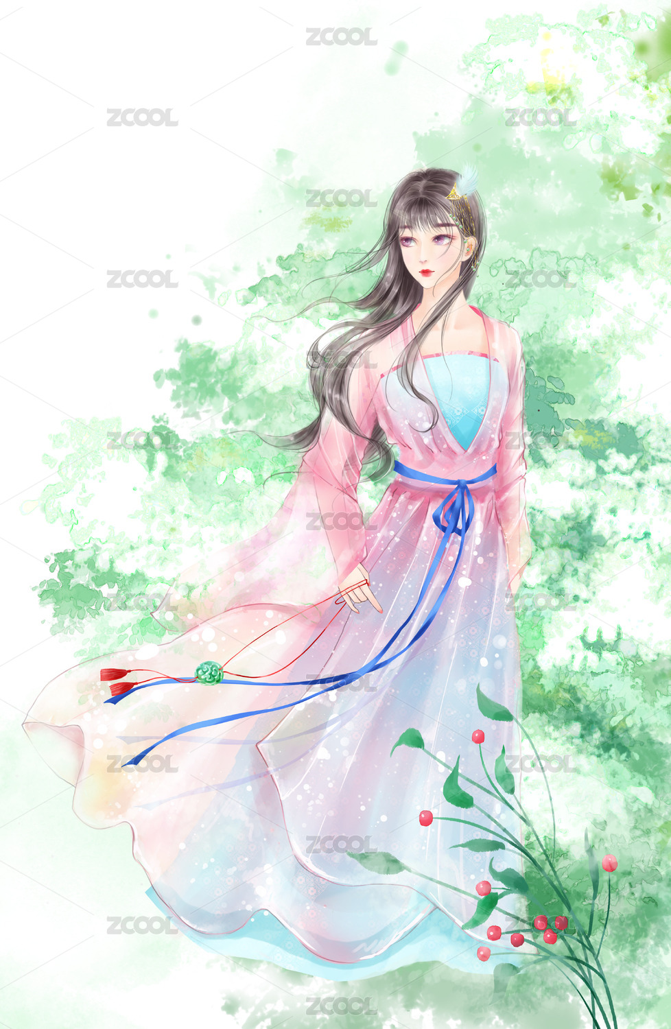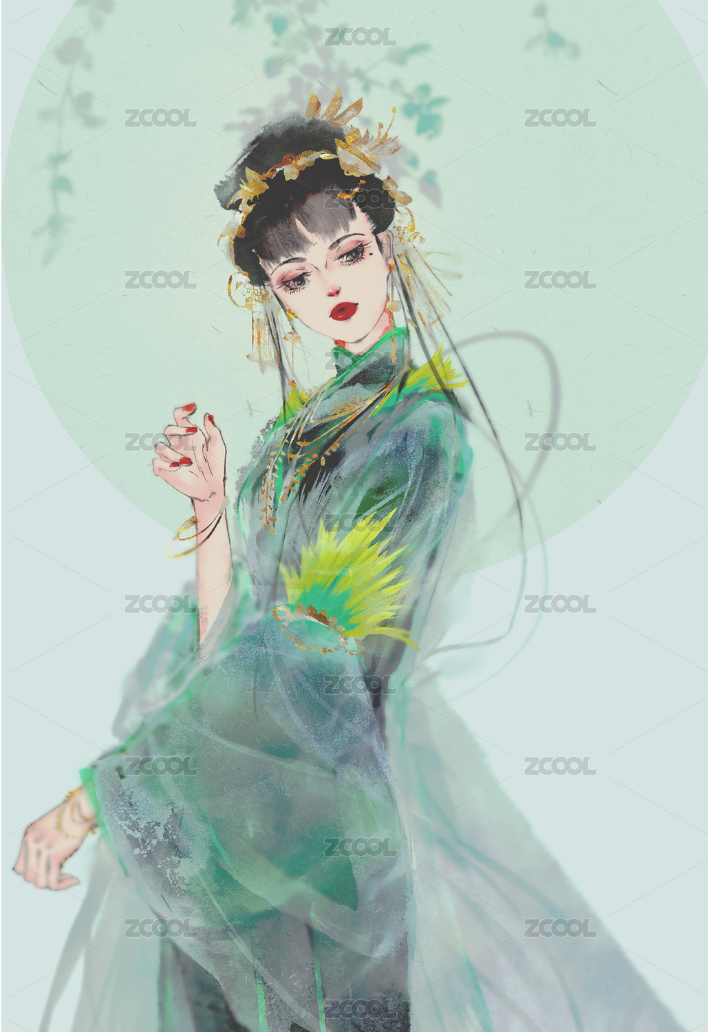 猫咪,拟人,古风,绿色,美女,可爱,水墨,水彩,封面,小说