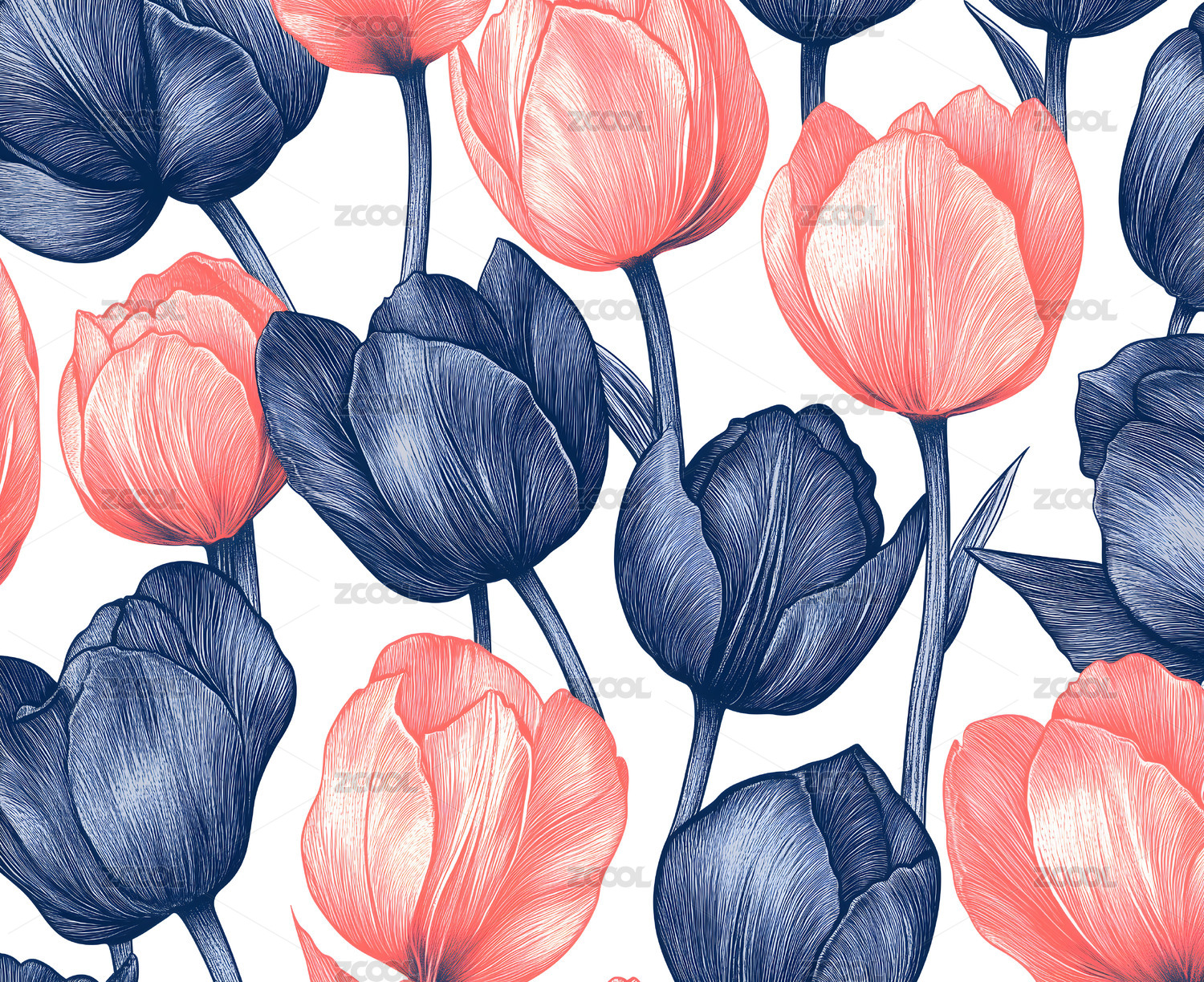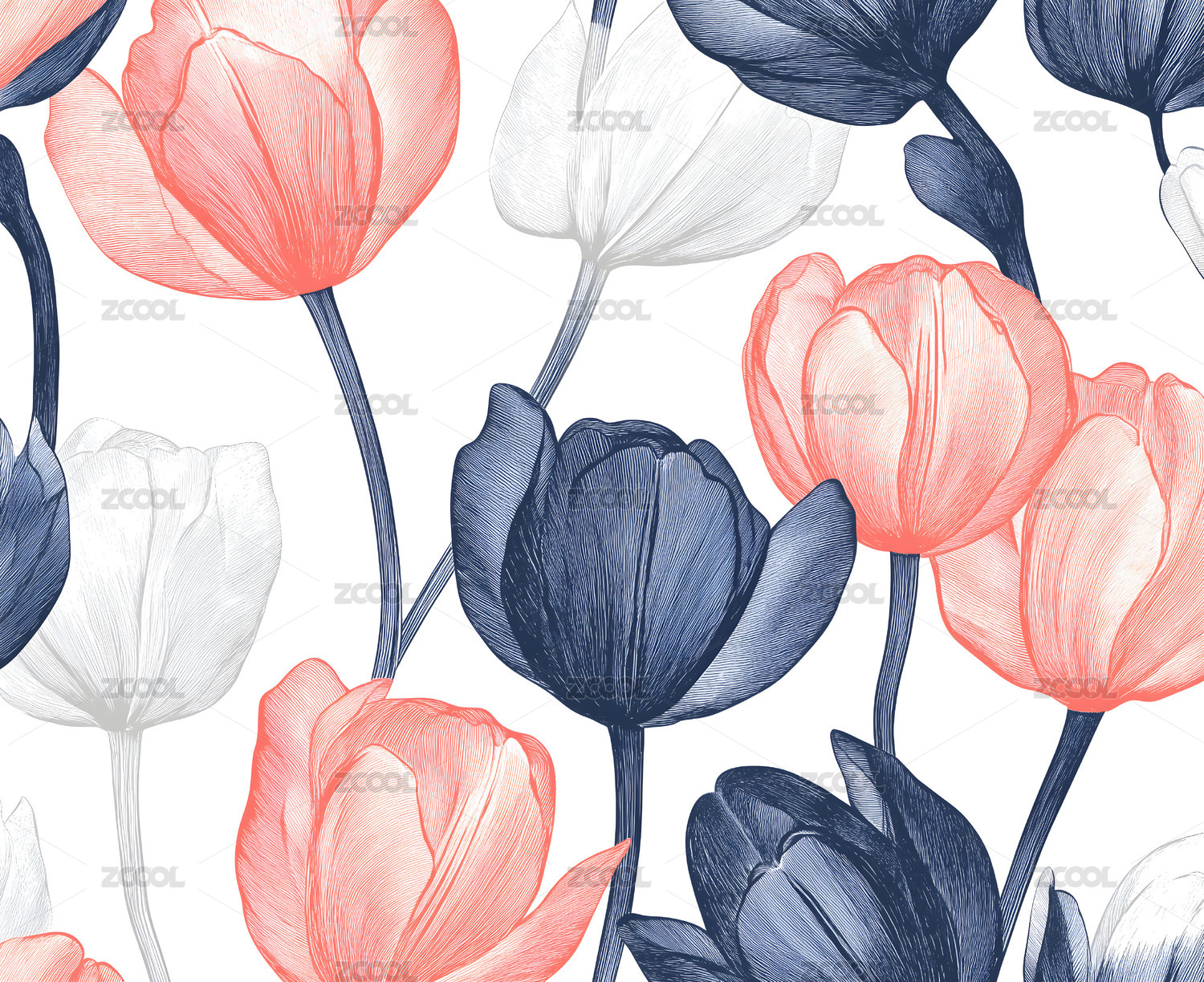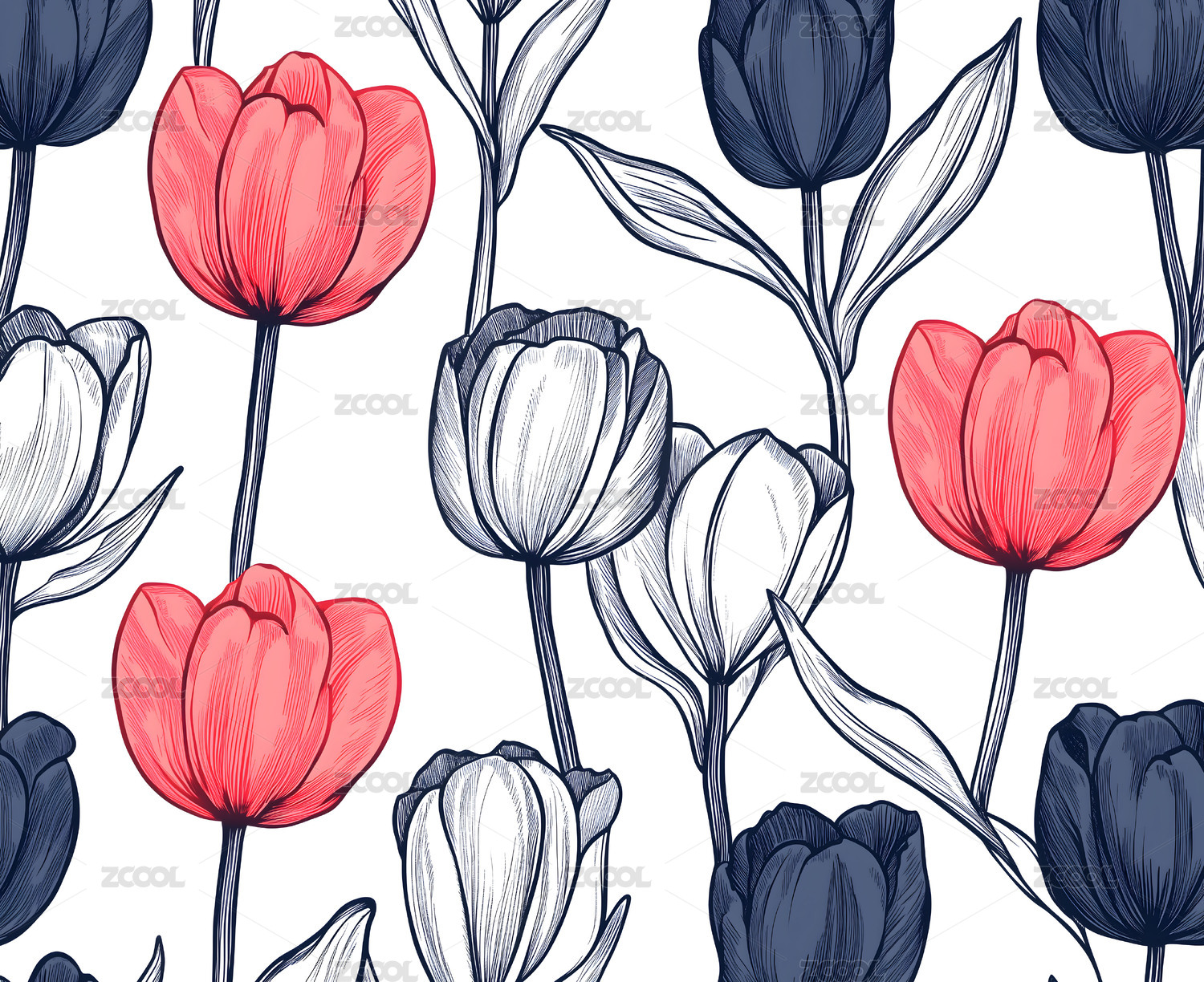 白色背景上郁金香花的水彩图案。美丽的花卉