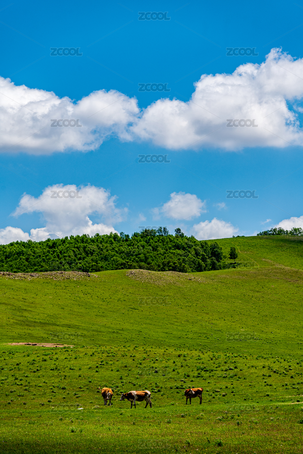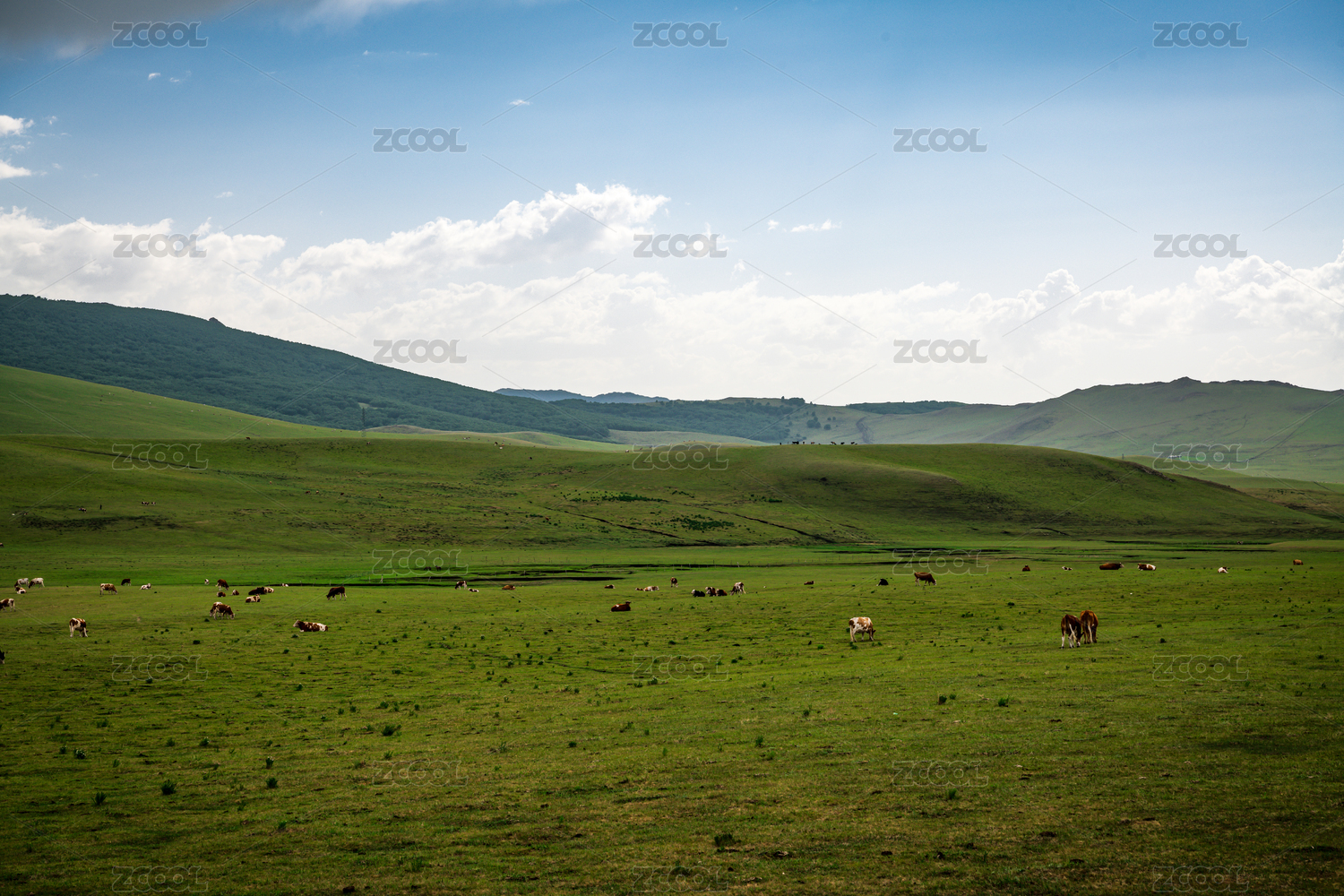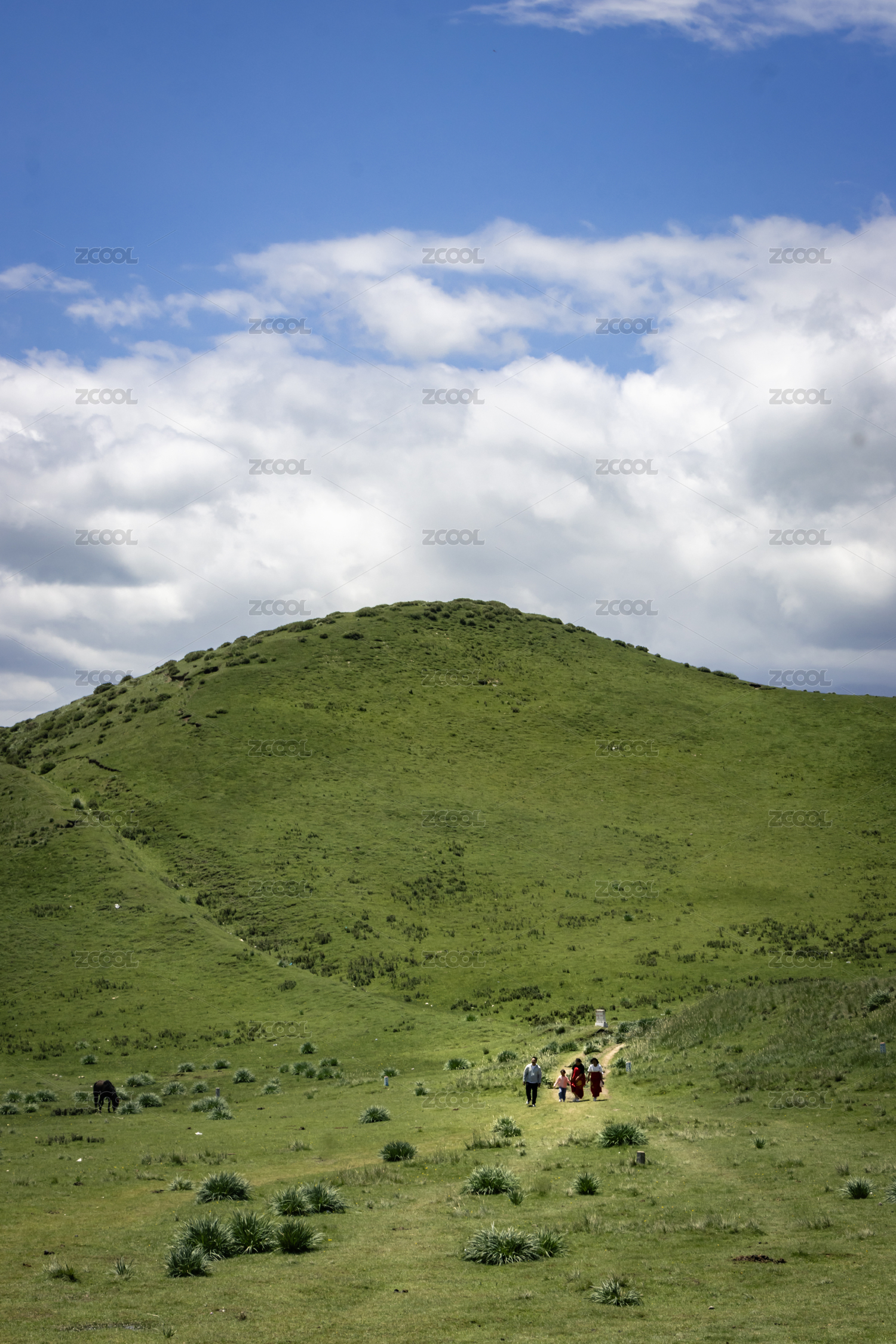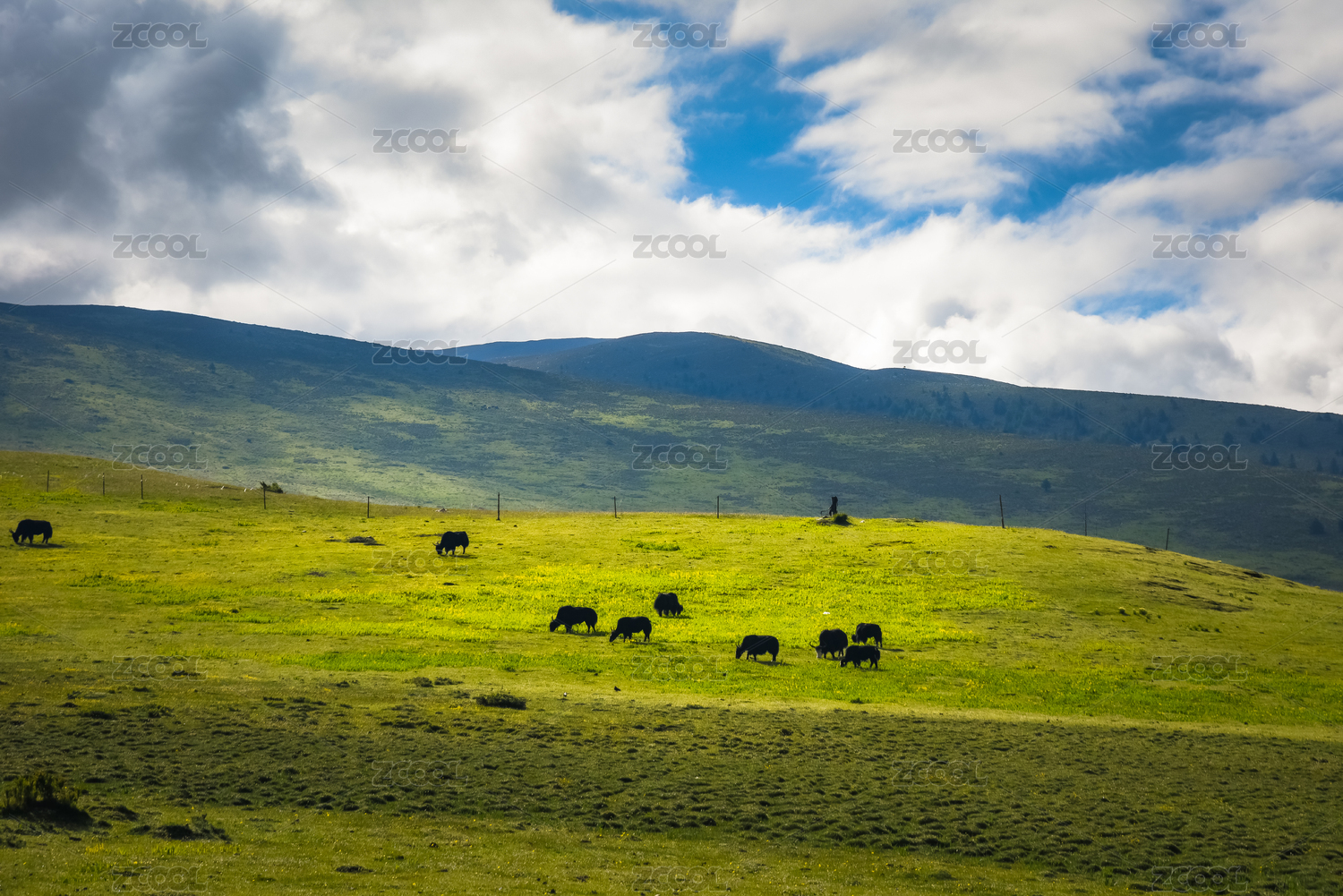 蓝天白云下的草原山脉和高原牧场,中国西藏