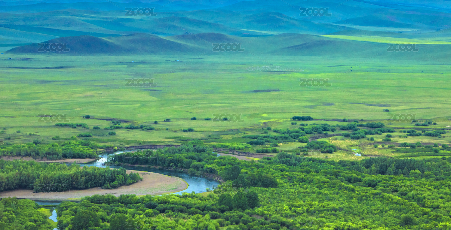 中国内蒙古鄂尔多斯根河湿地全景风光