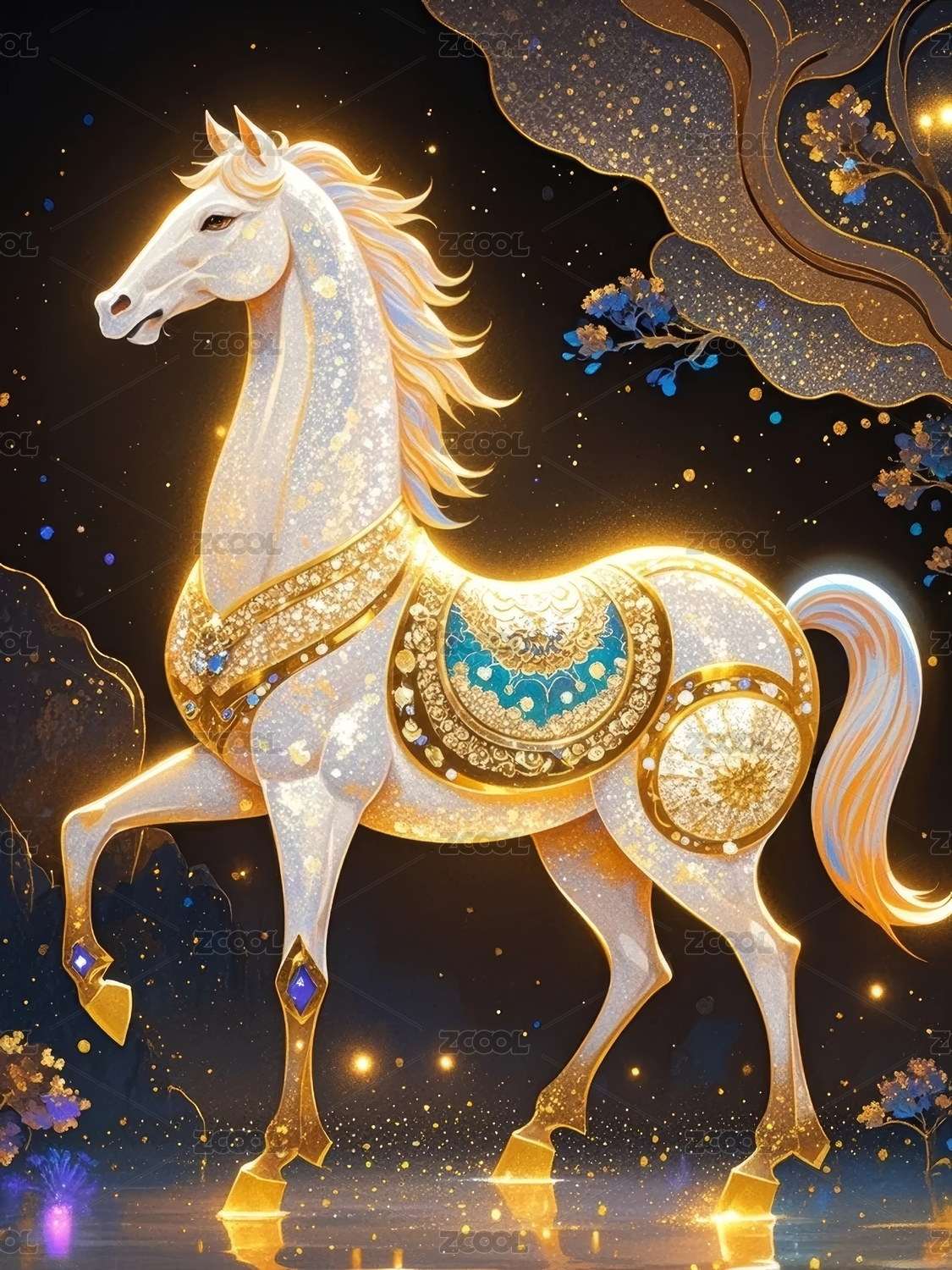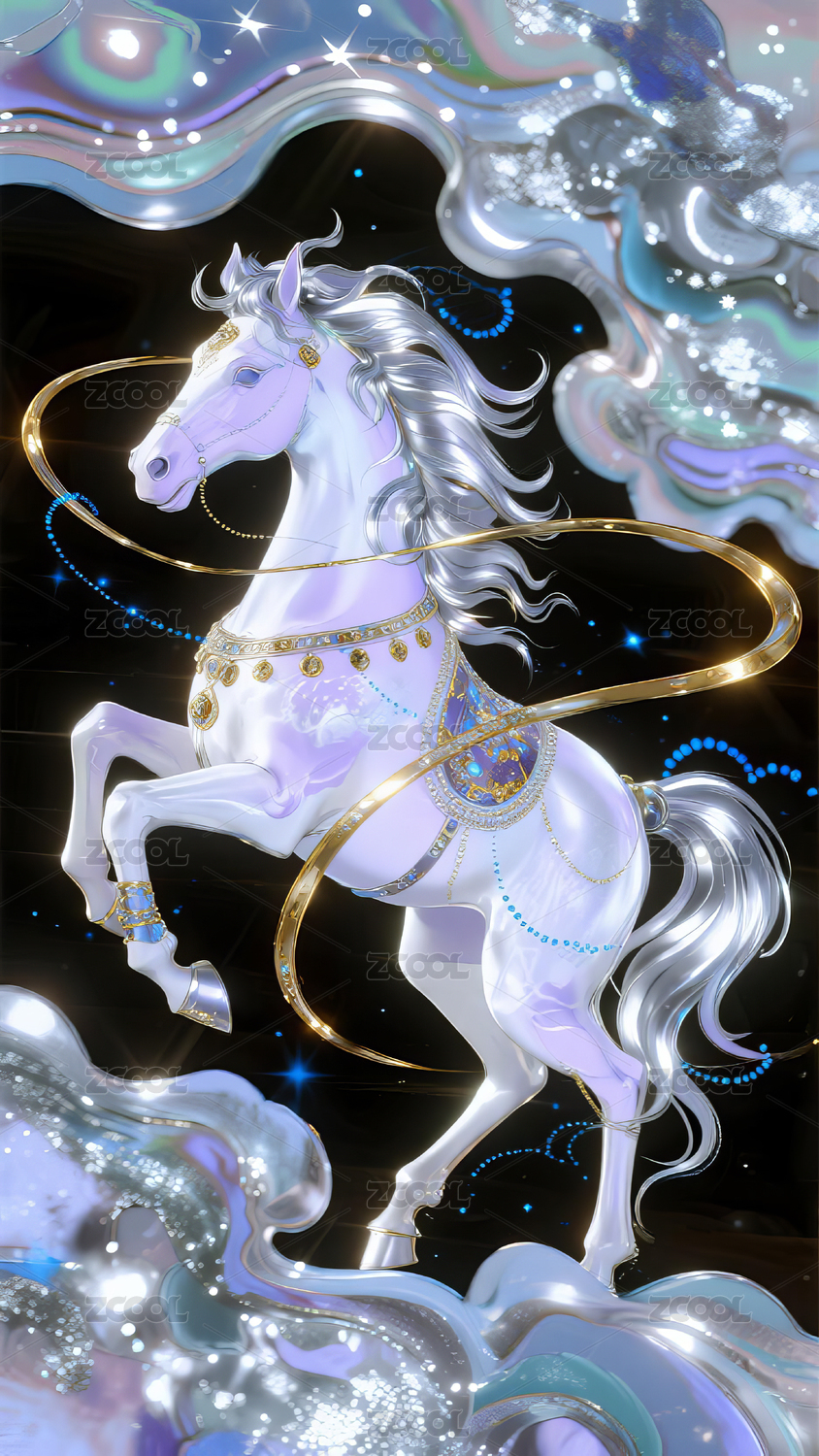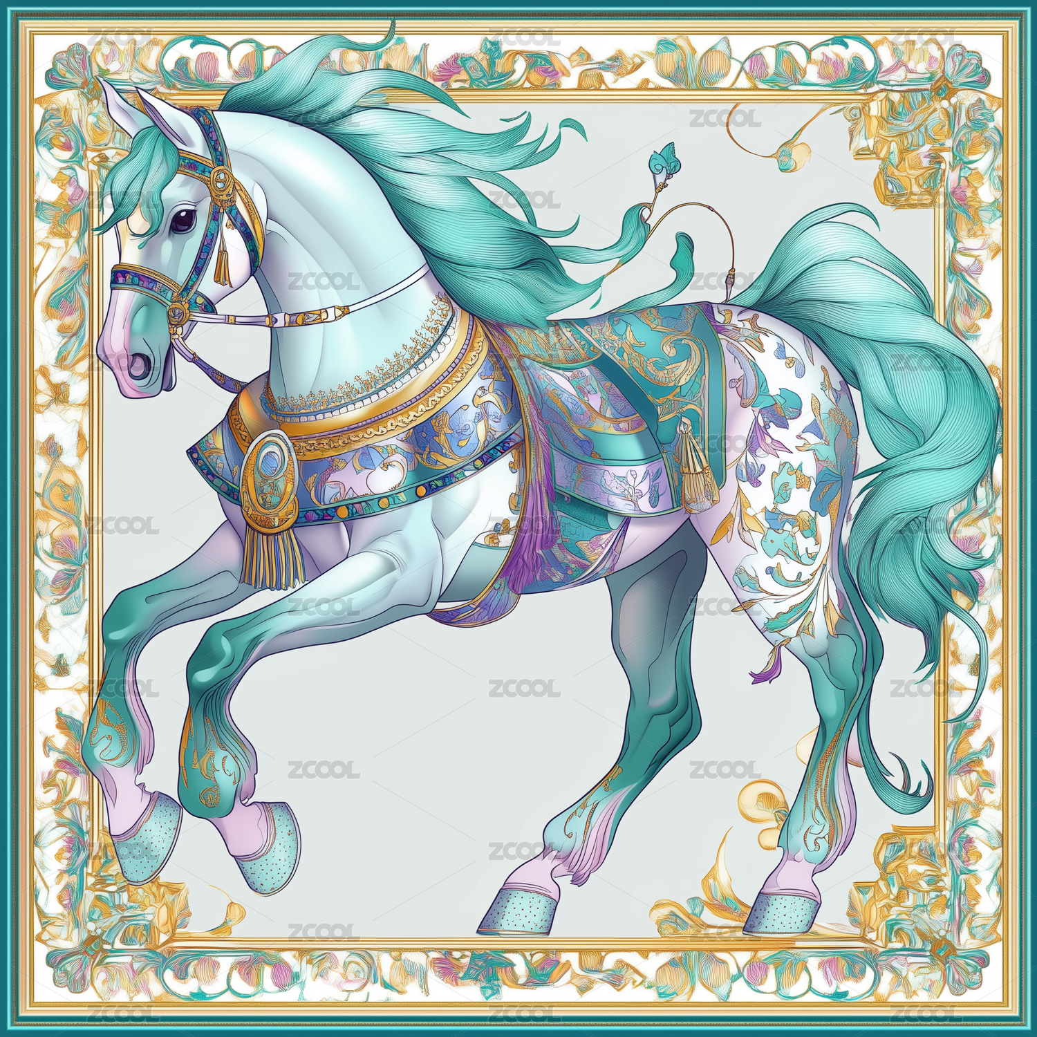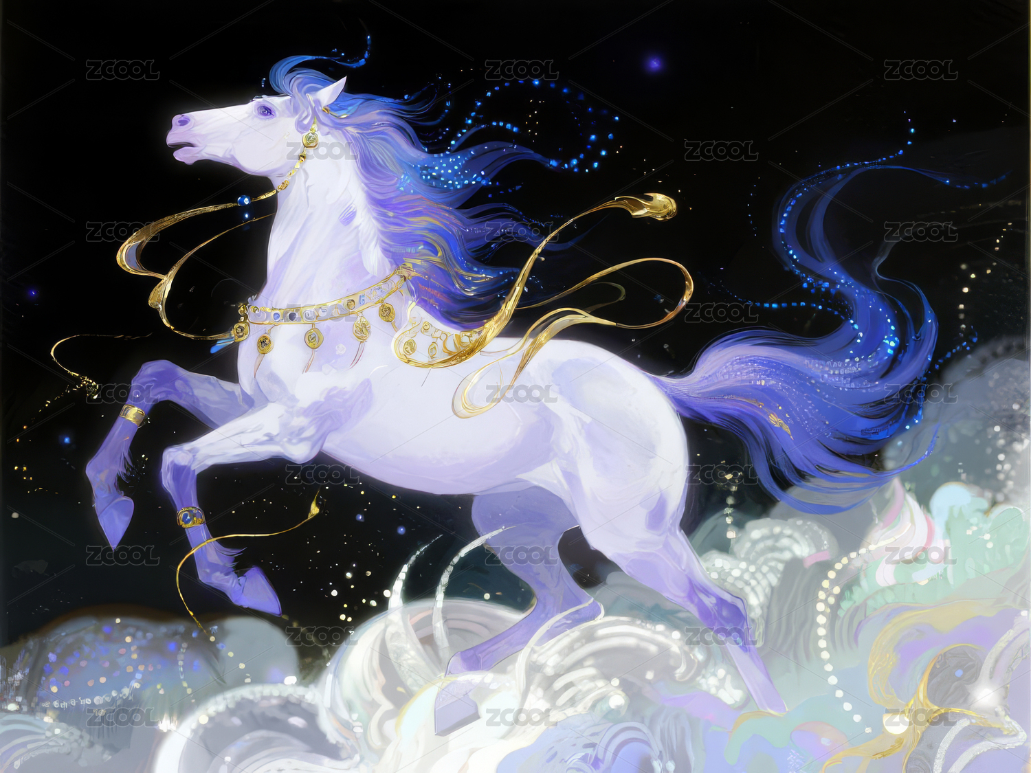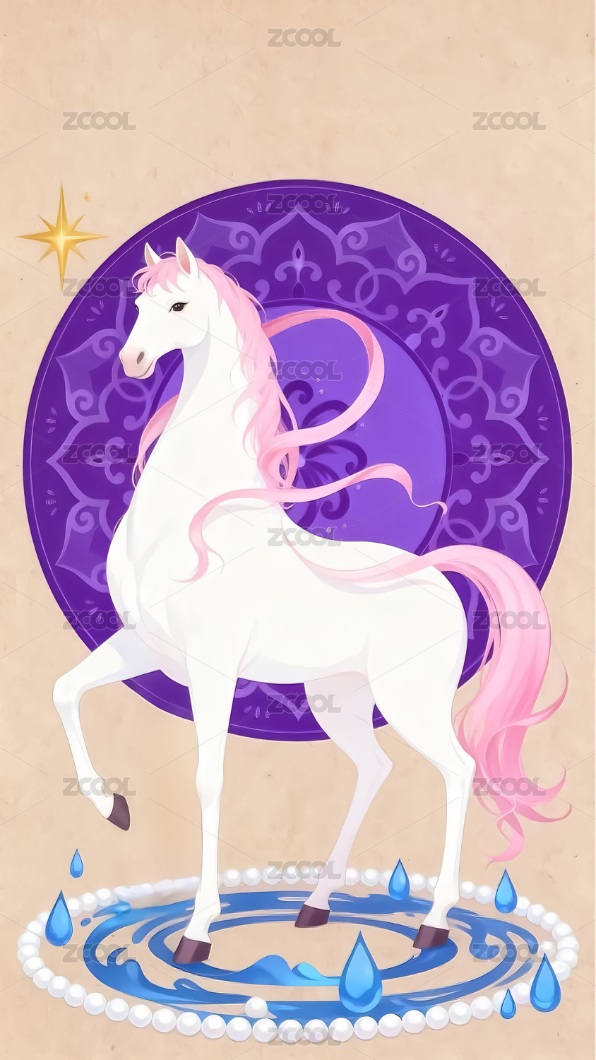 国潮风,敦煌,十二生肖,动物,红色,生肖,飞天,午马,插画