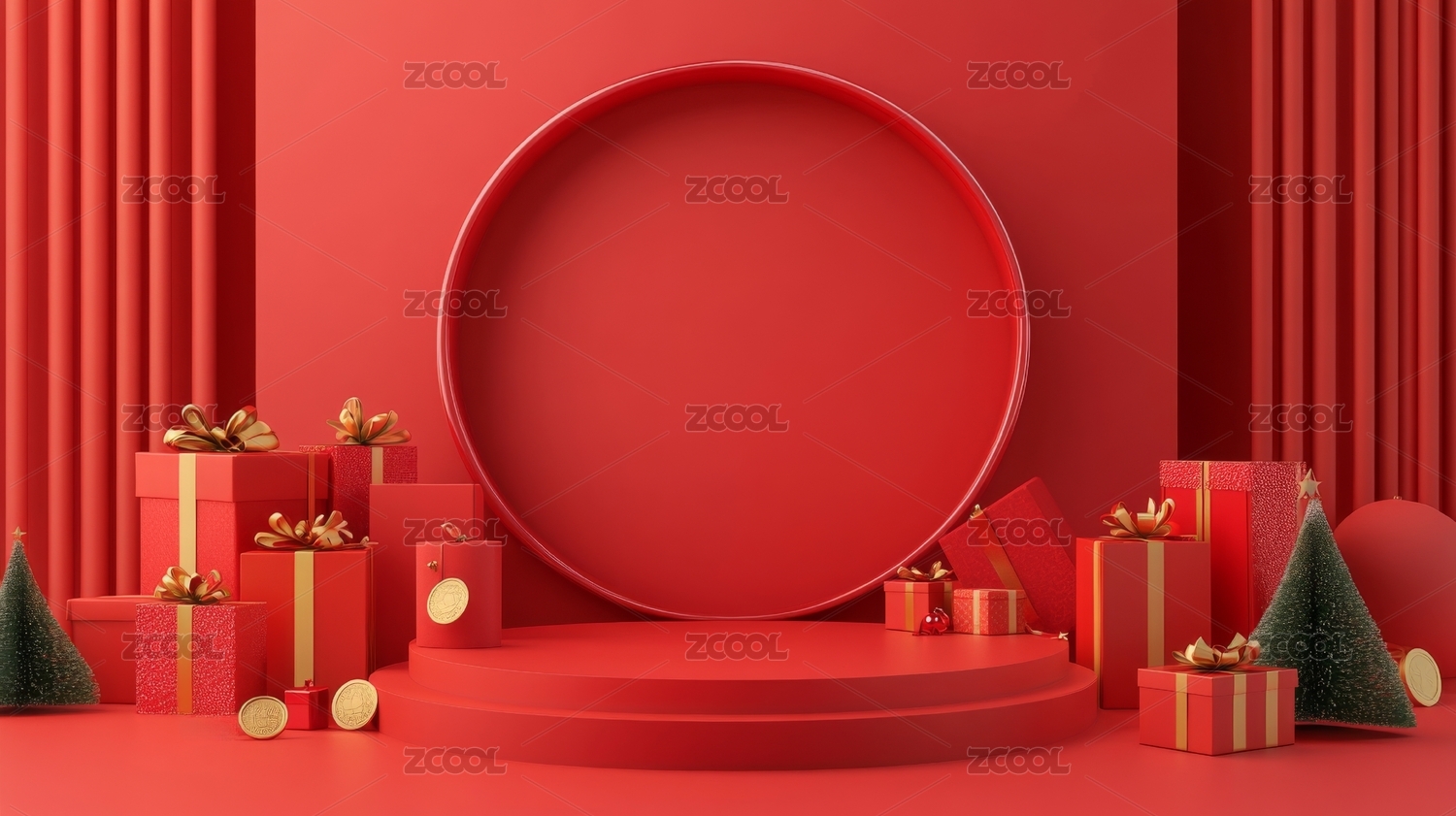 红色节日主题电商产品展台背景