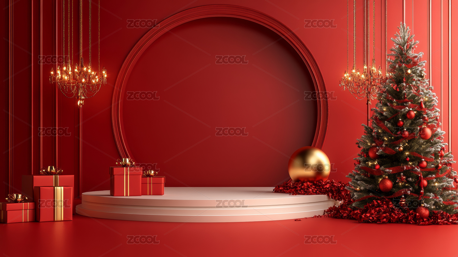 红色圣诞节主题电商产品展台背景