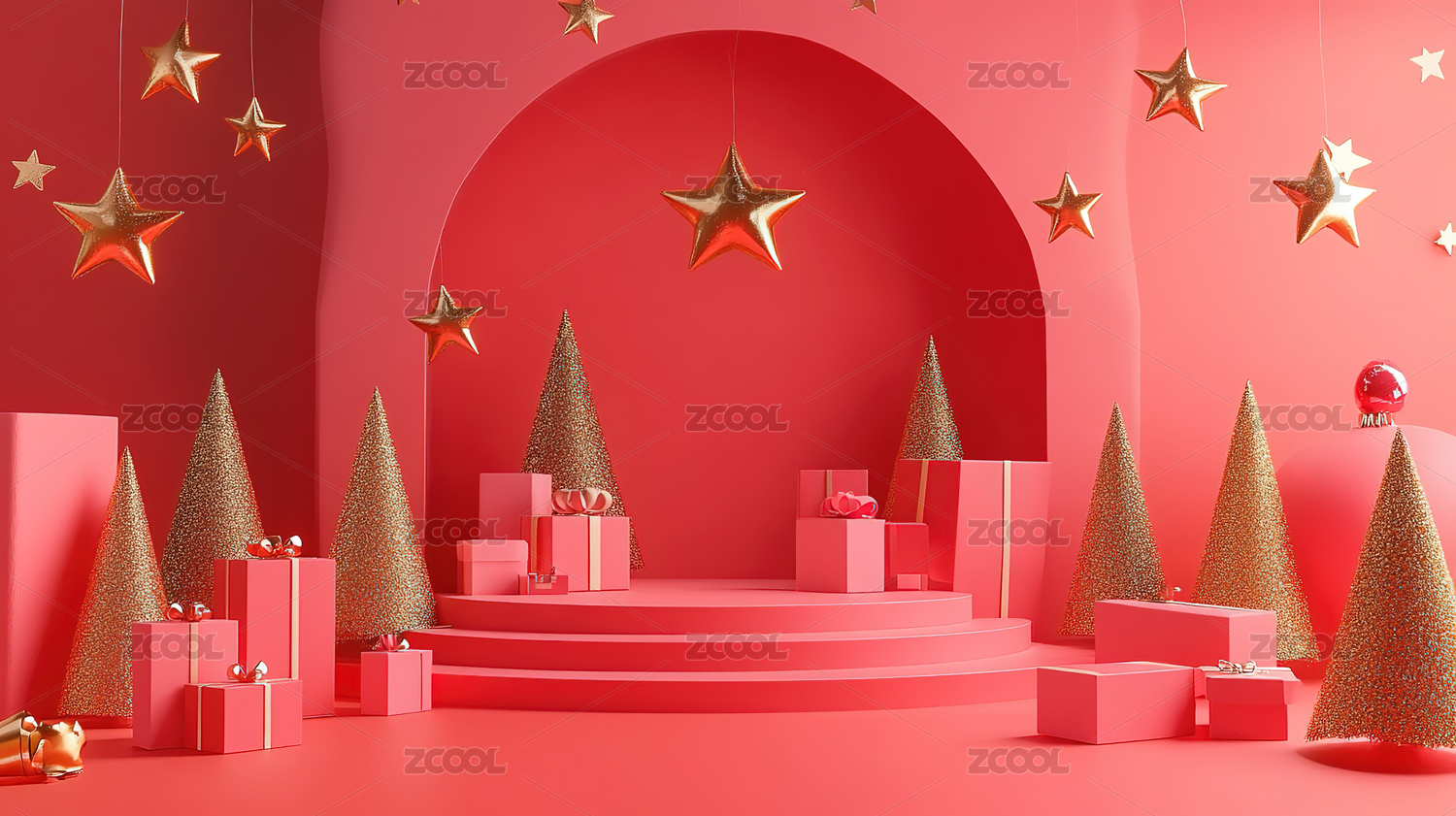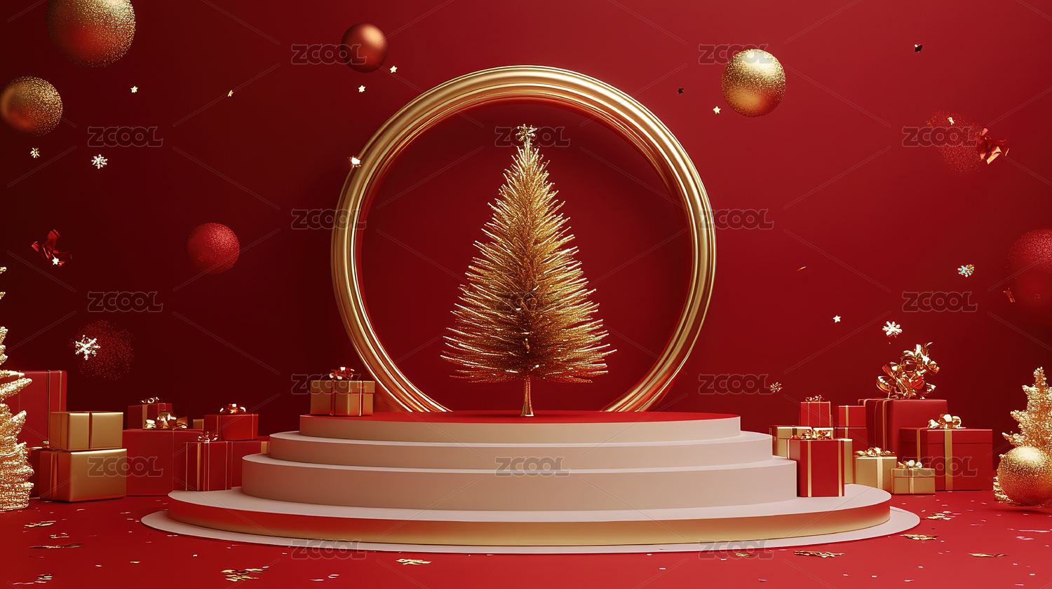 金红色的圣诞舞台