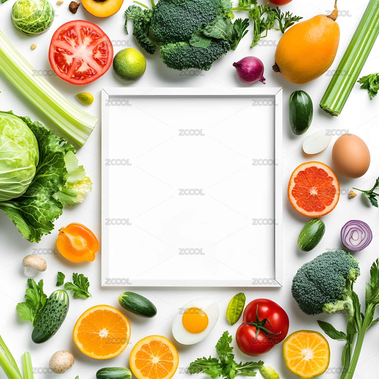 由各种蔬菜和水果组成的边框 手绘插画小图标
