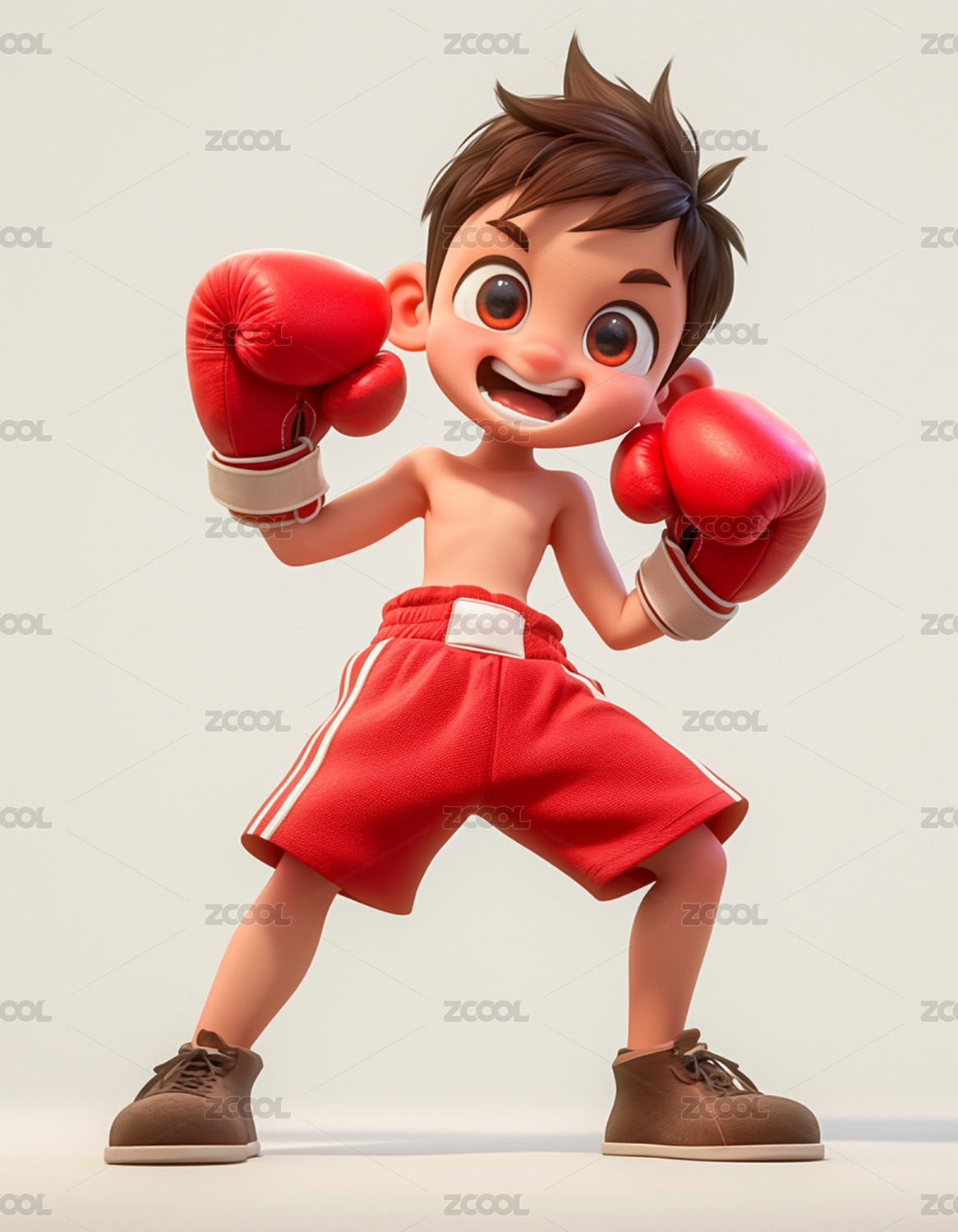 3D卡通打拳击的男孩
