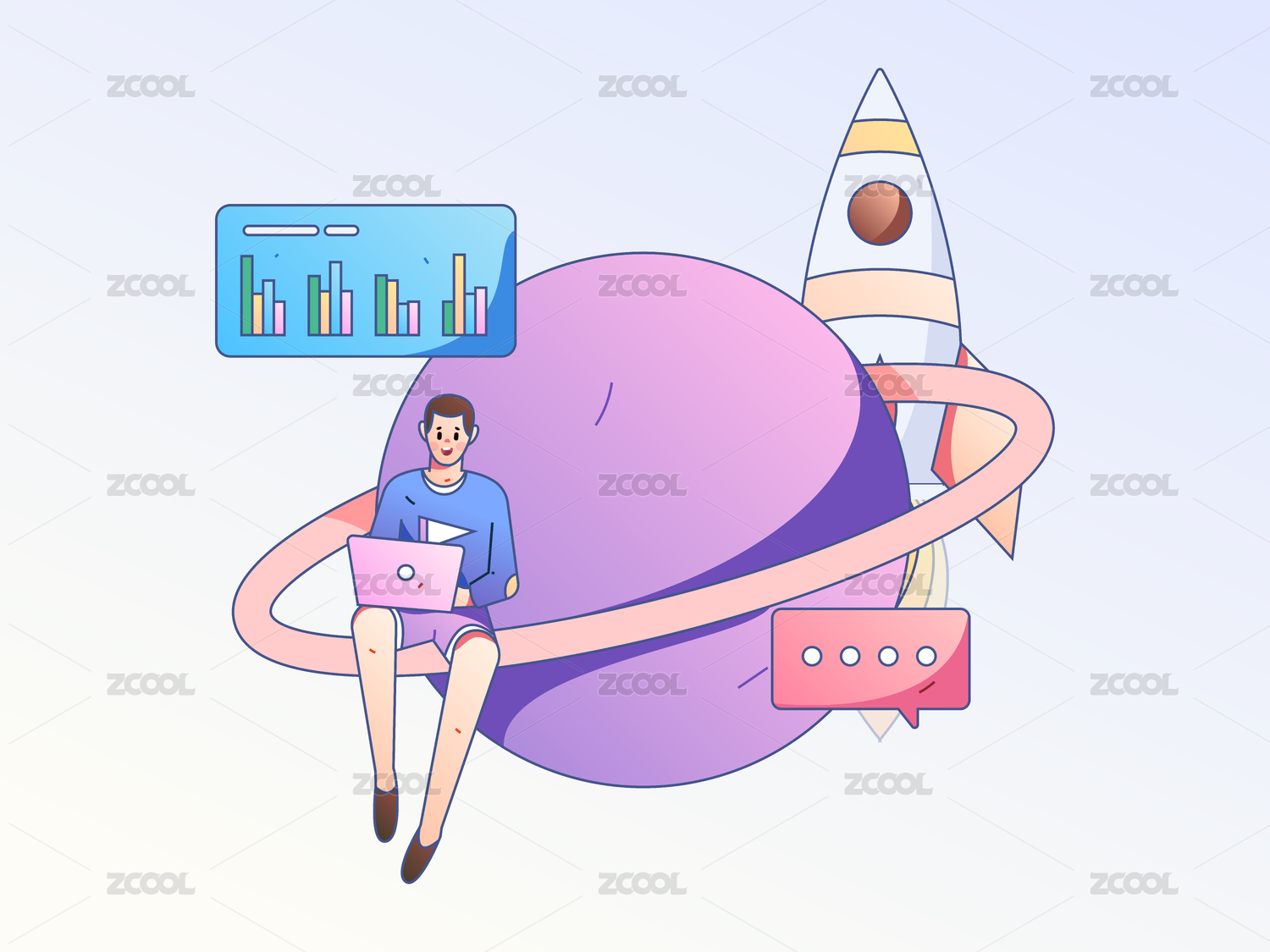 航天火箭发射升空插画宇宙未来科技星球海报