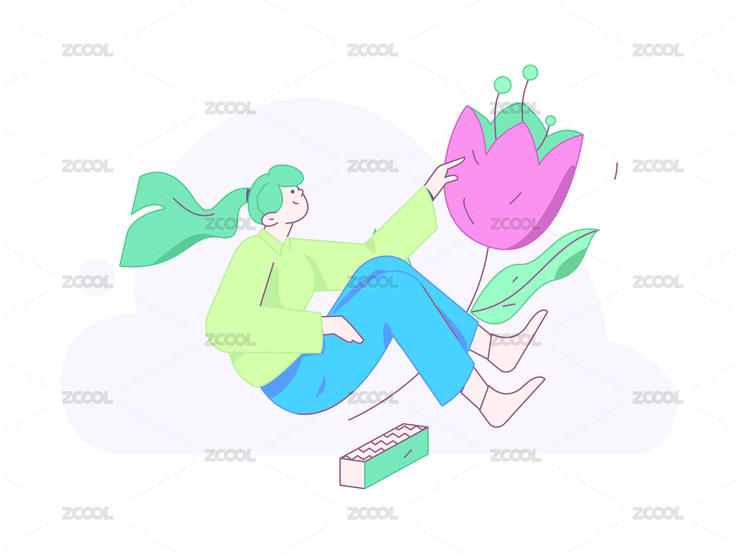 彩色蓝色描边矢量插画互联网学习阅读思考