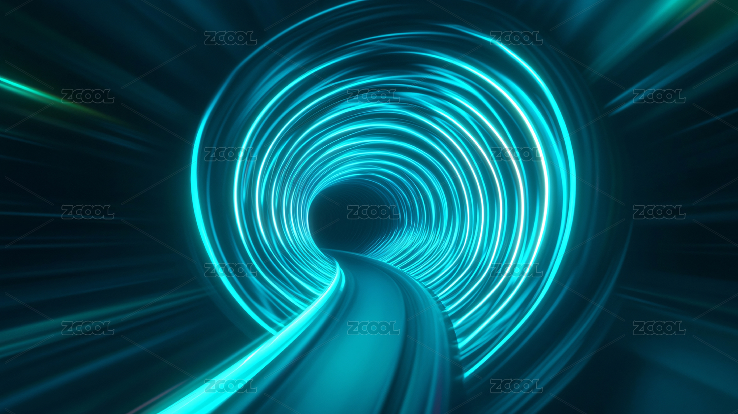 黑暗隧道发光照明抽象技术速度概念三维渲染