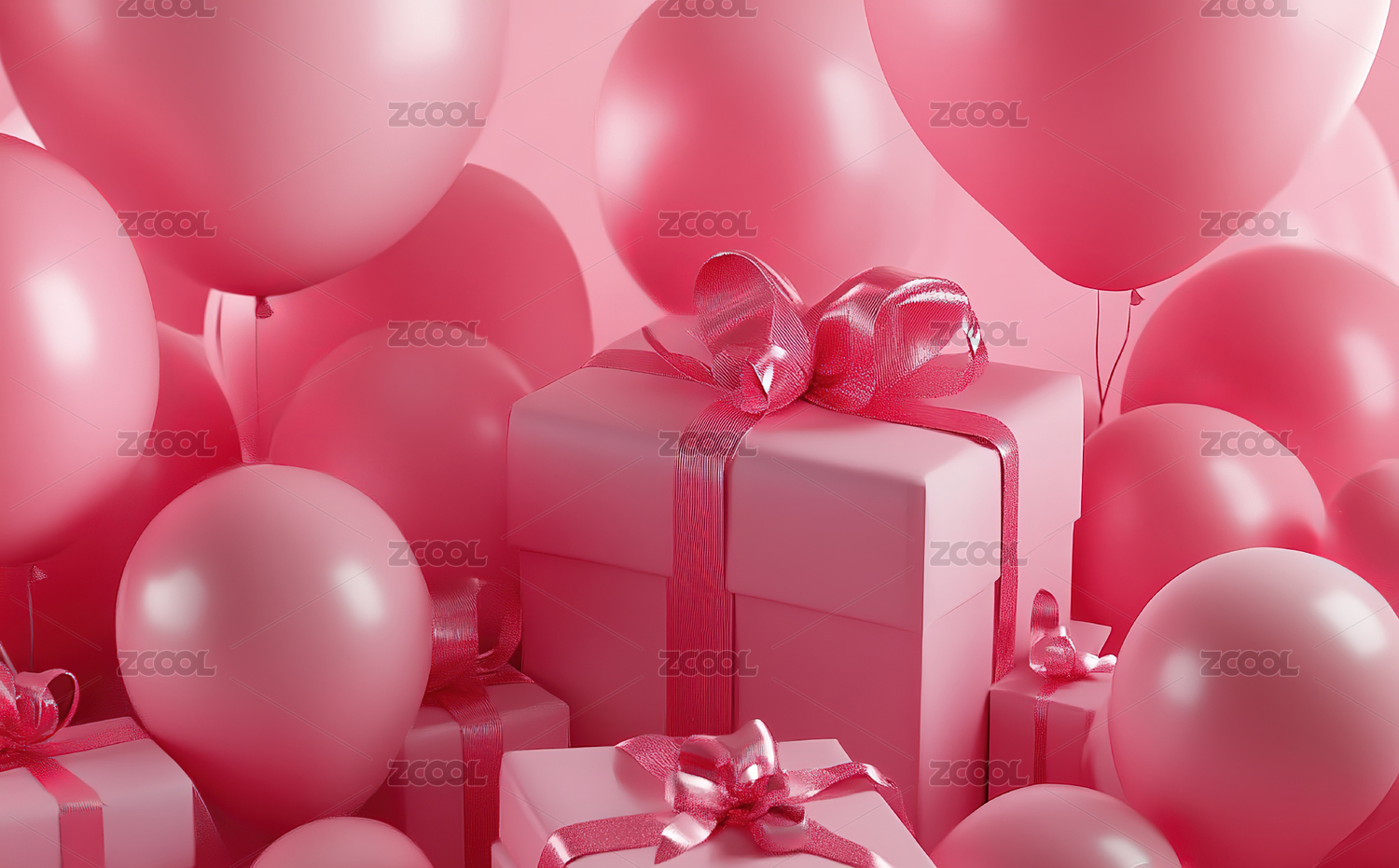 粉红色的气球和礼物盒背景