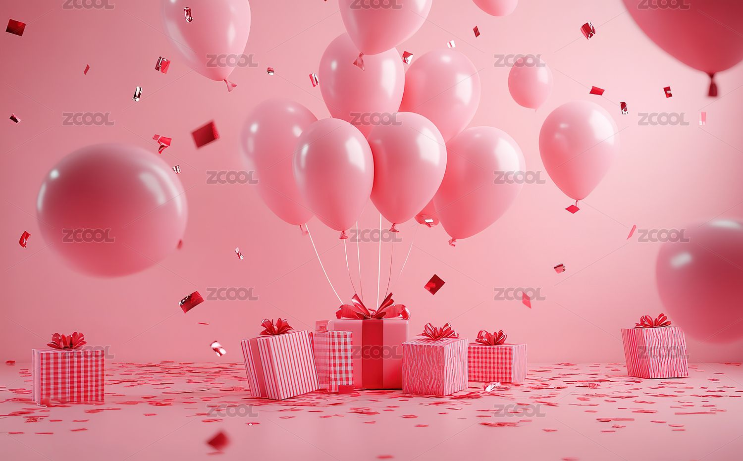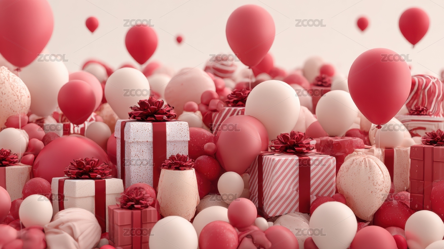 红色气球与礼物堆叠场景