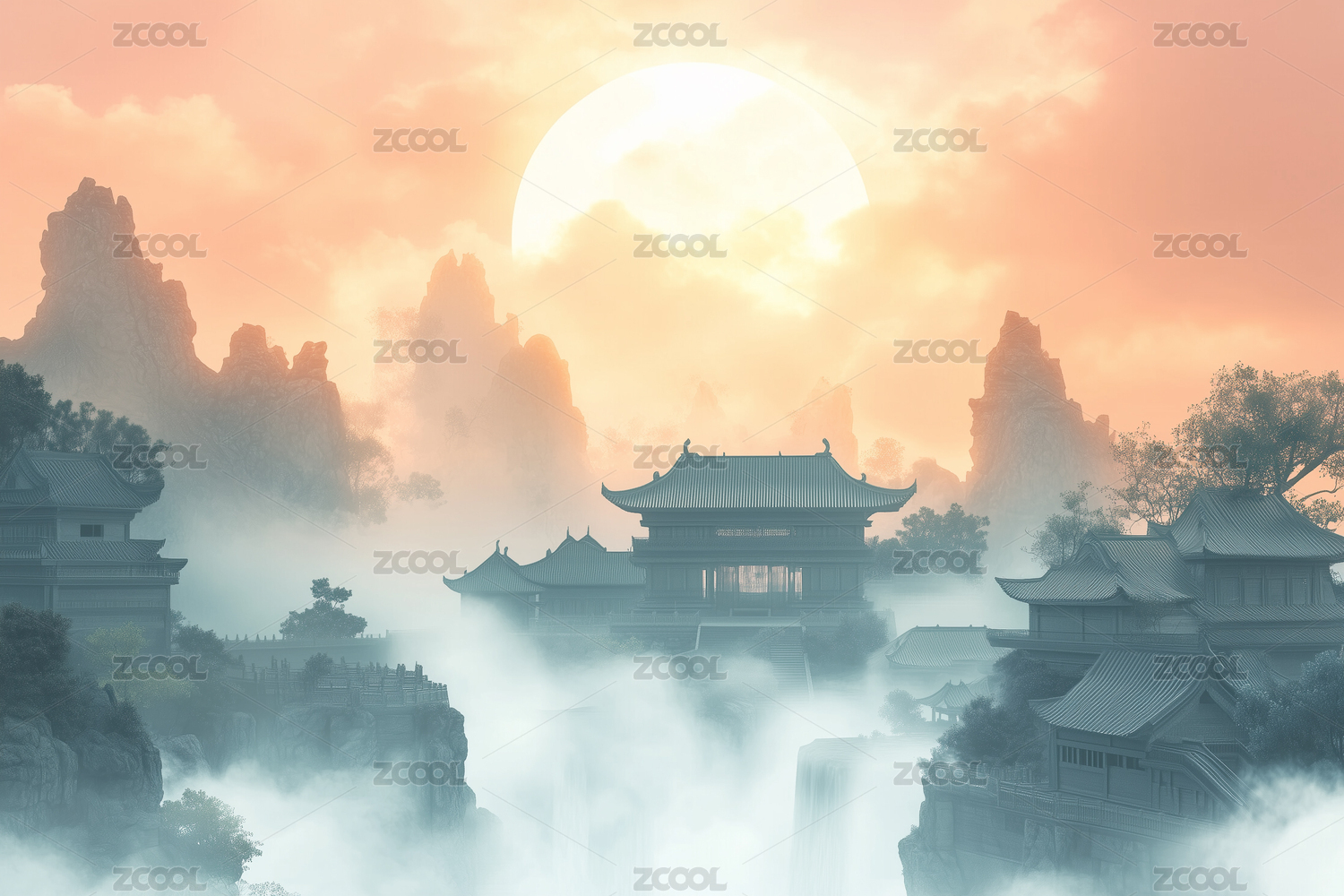 AIGCFG,中国风,中式,国潮风,插画,风景,建筑,秋天,枫叶