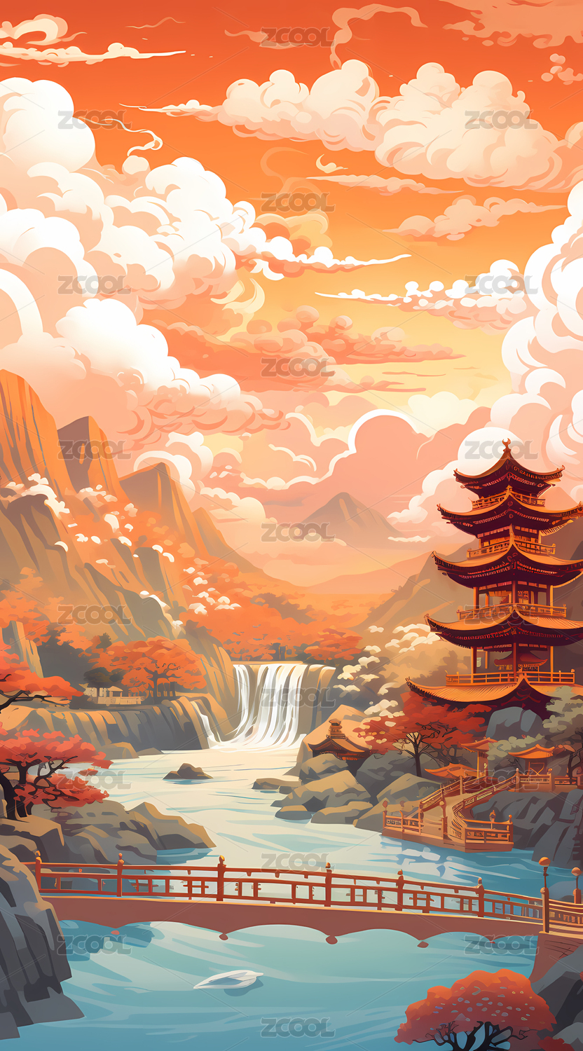 AIGCFG,中国风,水墨,插画,中式风格,国潮风,风景,山