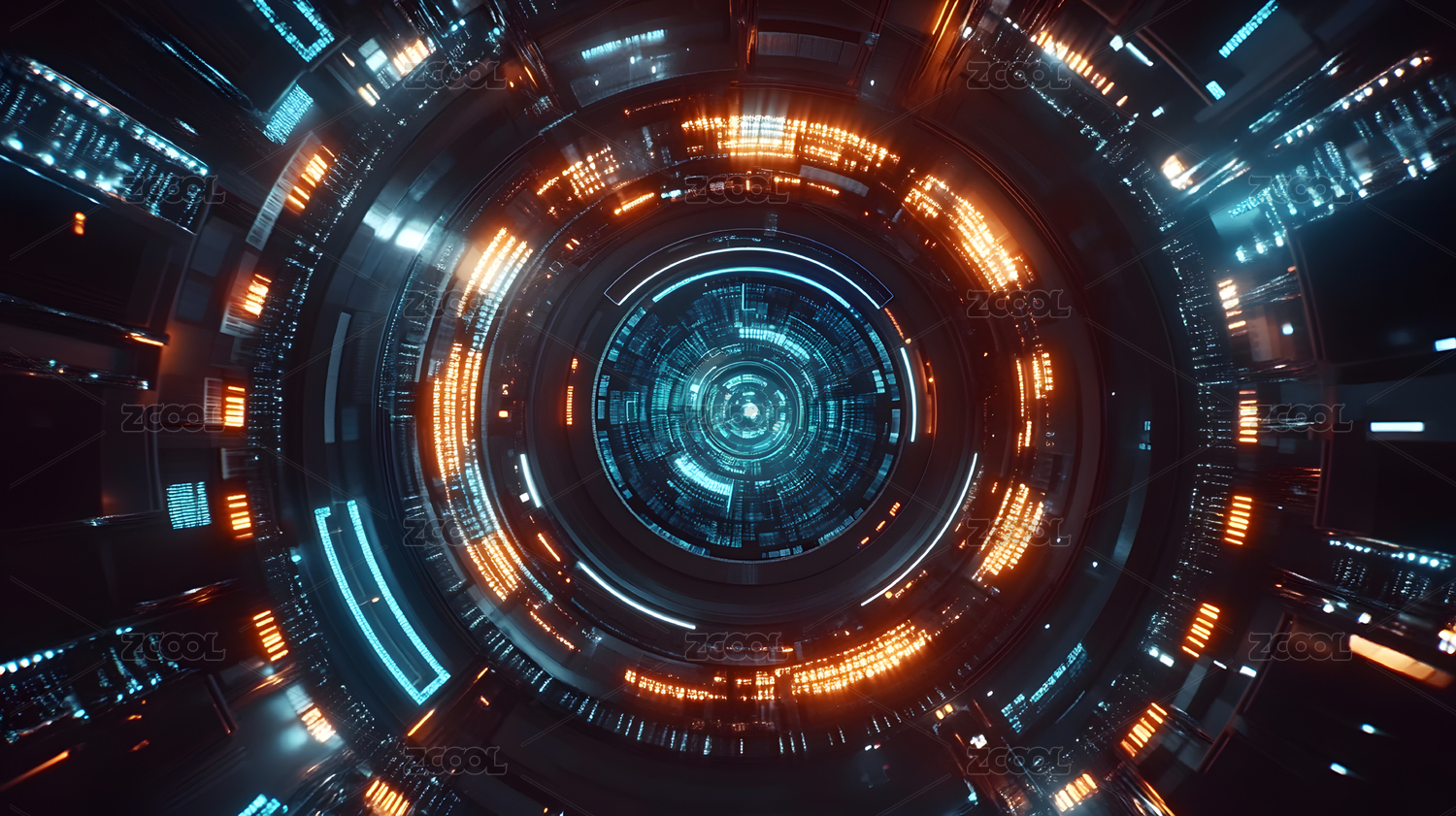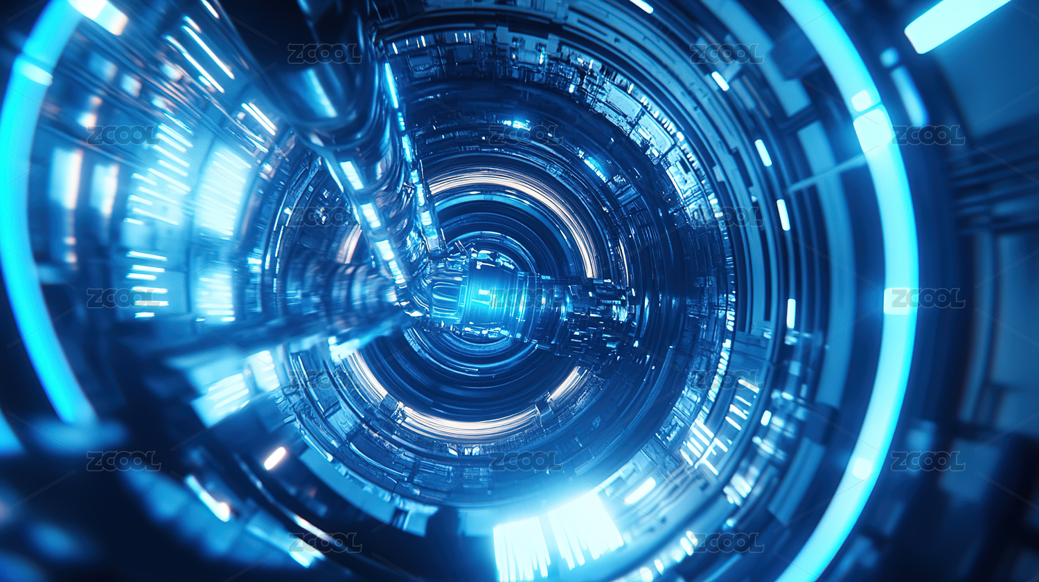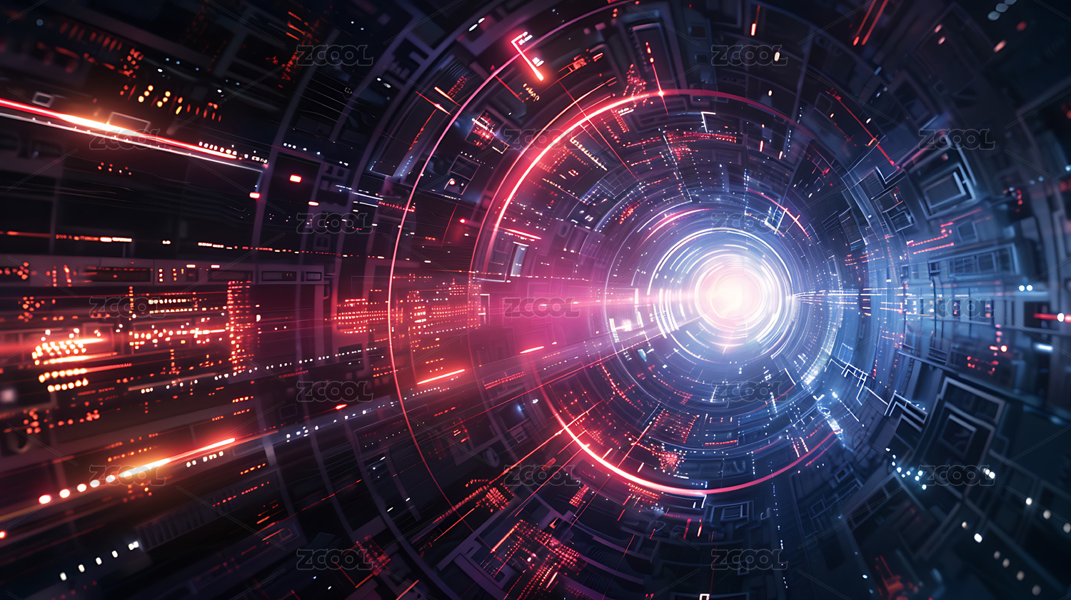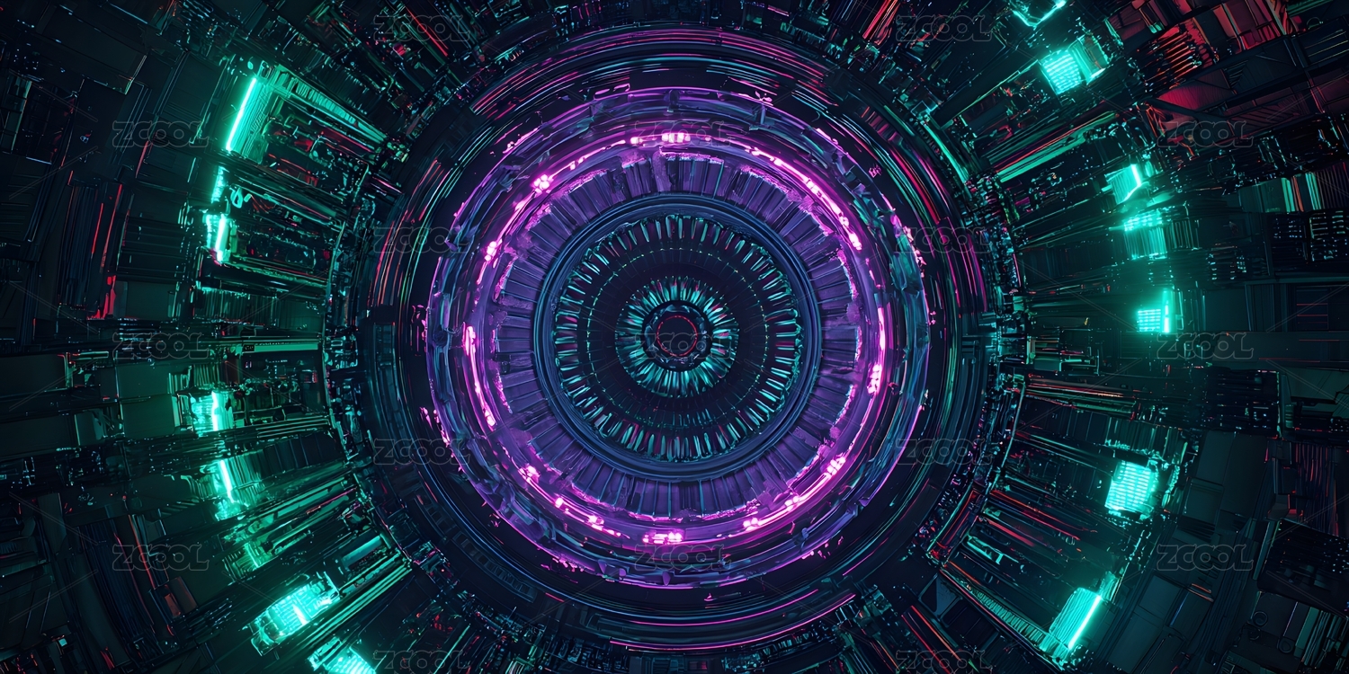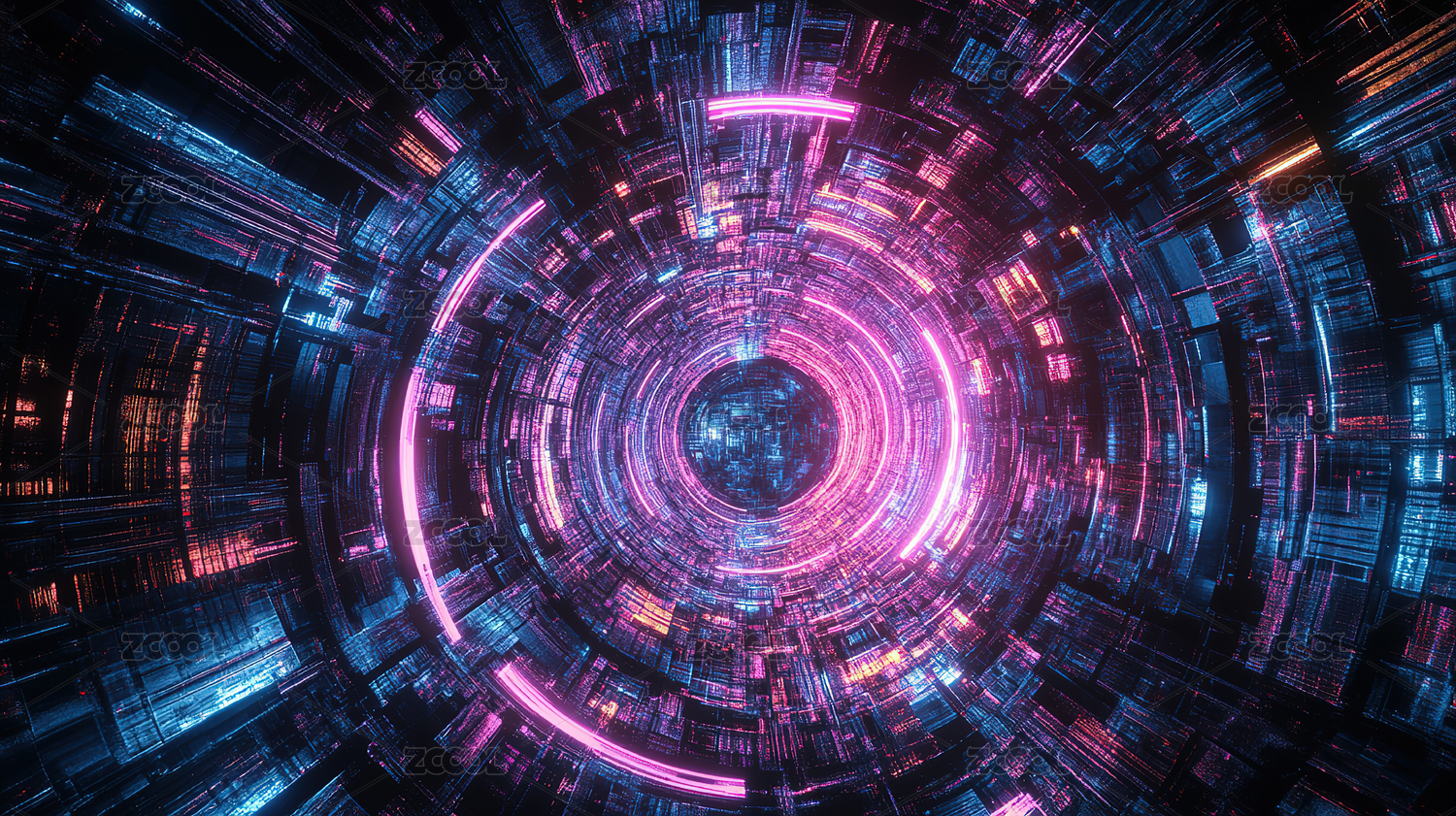 3D渲染的科幻延伸背景,几何隧道和霓虹灯