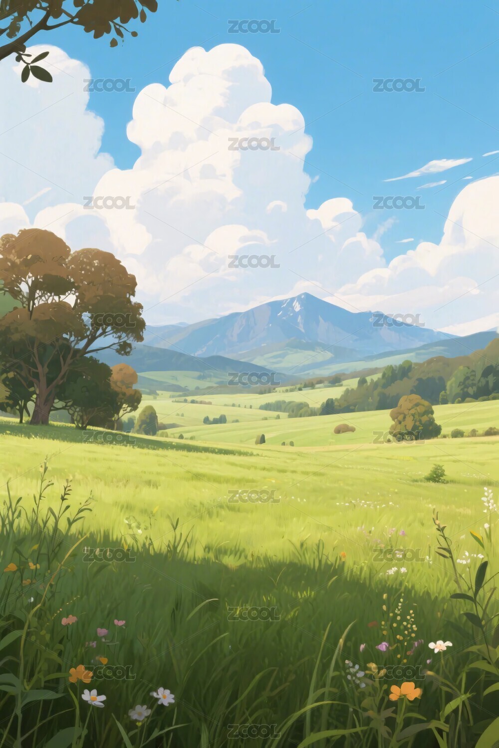 田园草地插画