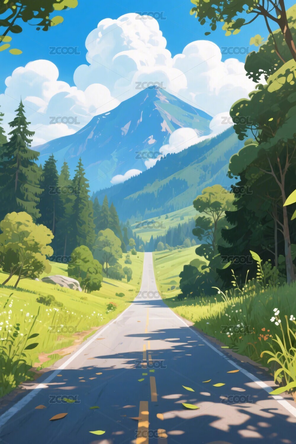 公路风景插画