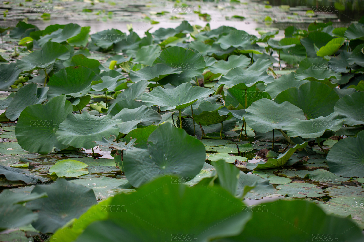 池塘中生长茂盛的荷叶莲花