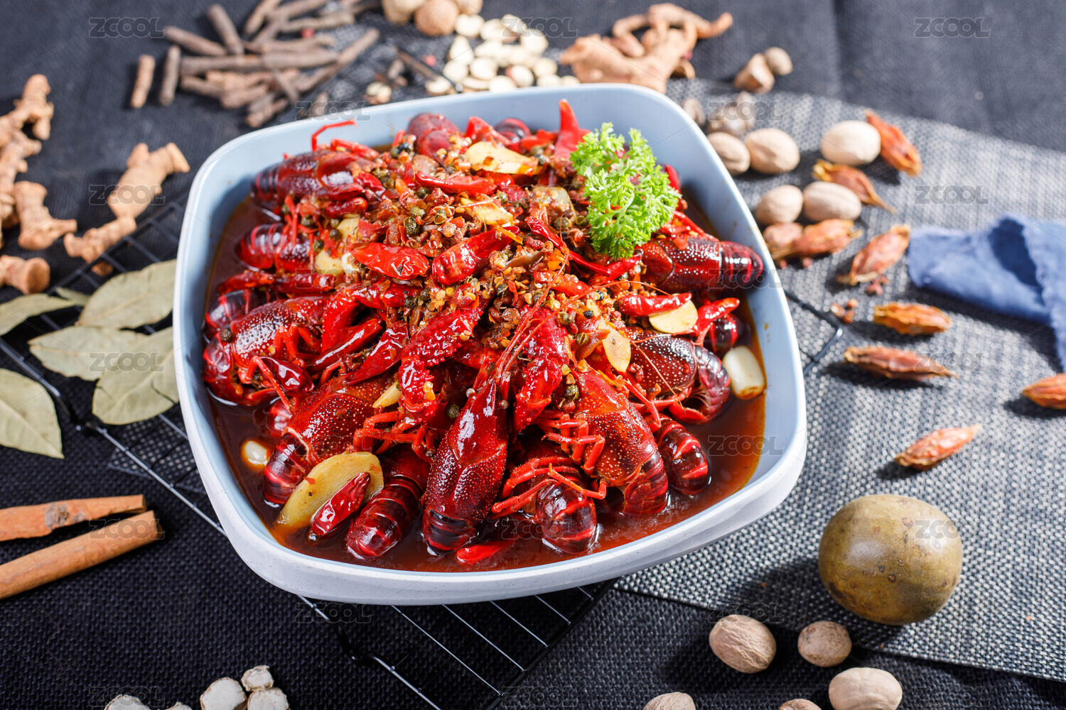 餐具里的麻辣小龙虾