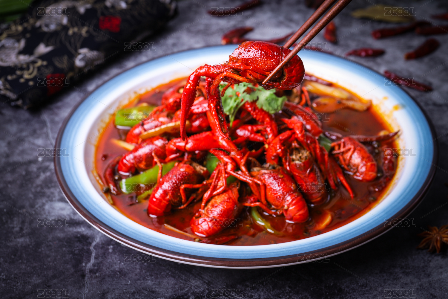 用筷子夹起来的麻辣小龙虾