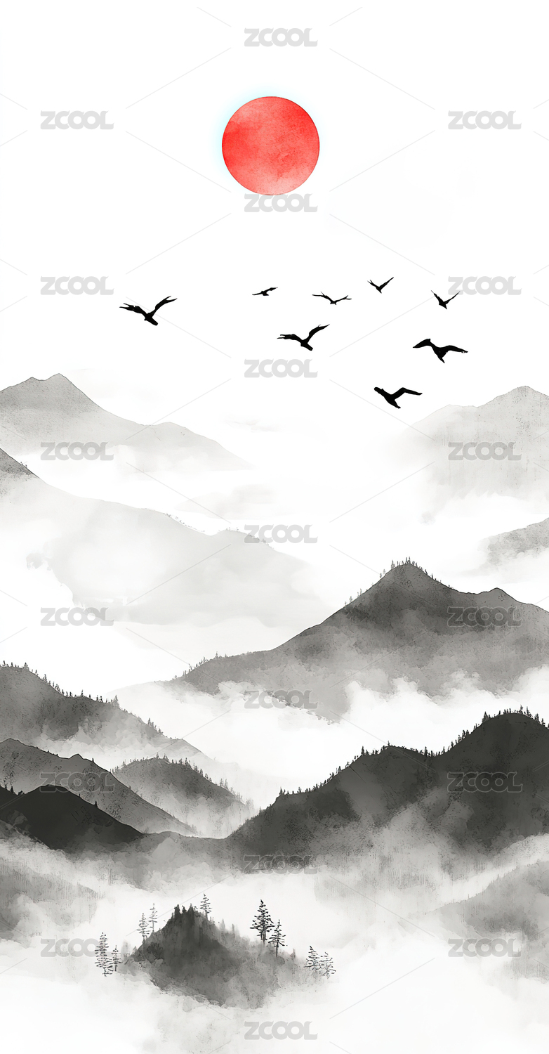 插画,高山,水墨画,中国画,艺术,自然,中国文化,新中式风格,地形,抽象