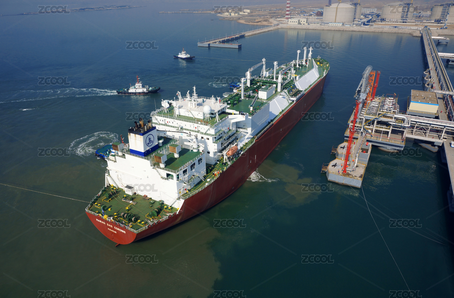 航拍天津港LNG码头船舶