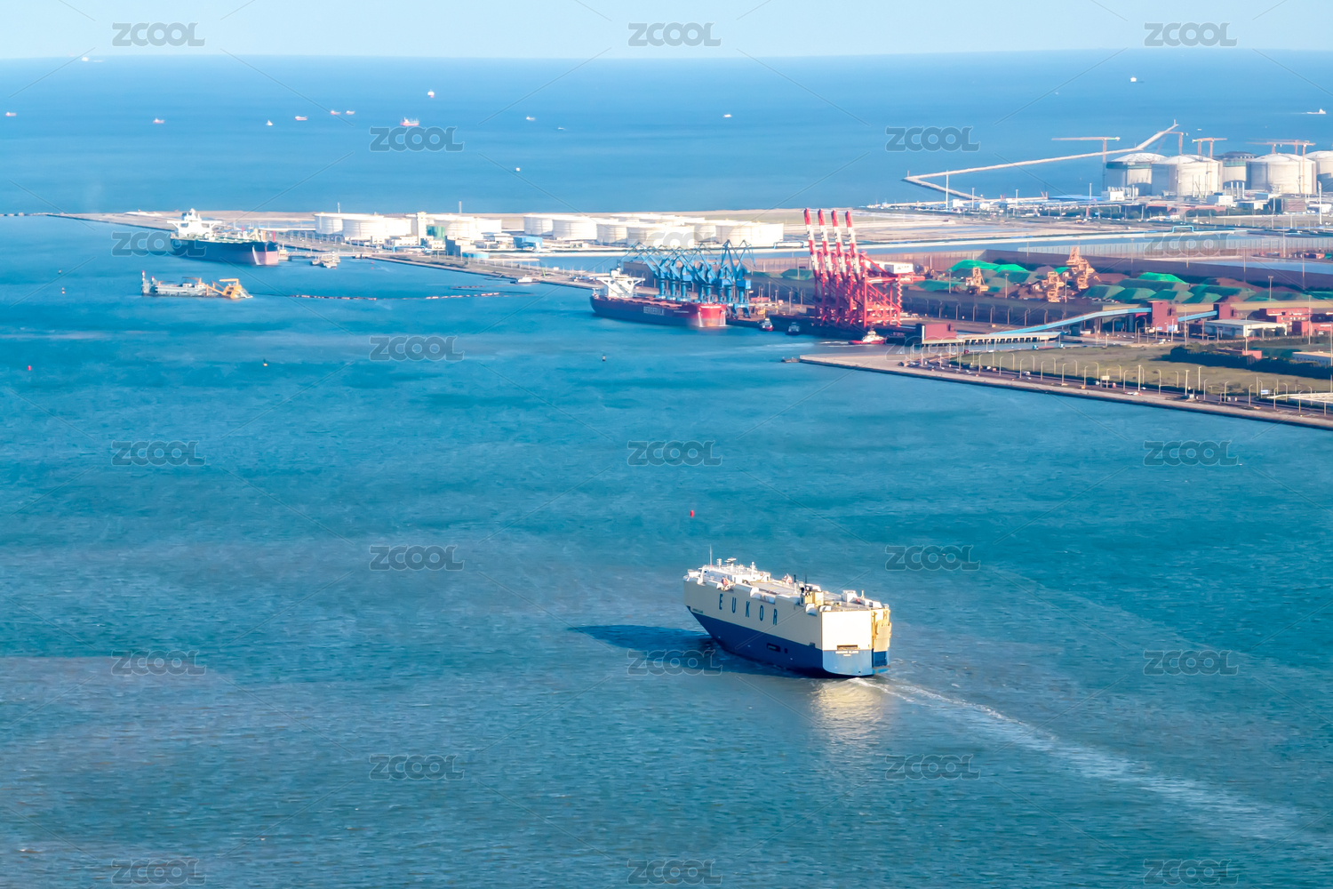 航拍天津港滚装船舶