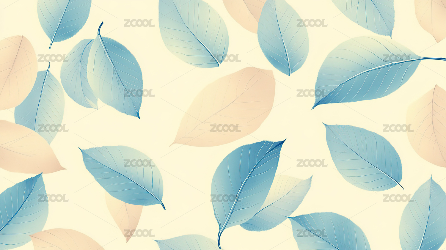 浅绿色调叶片组成的清新图案