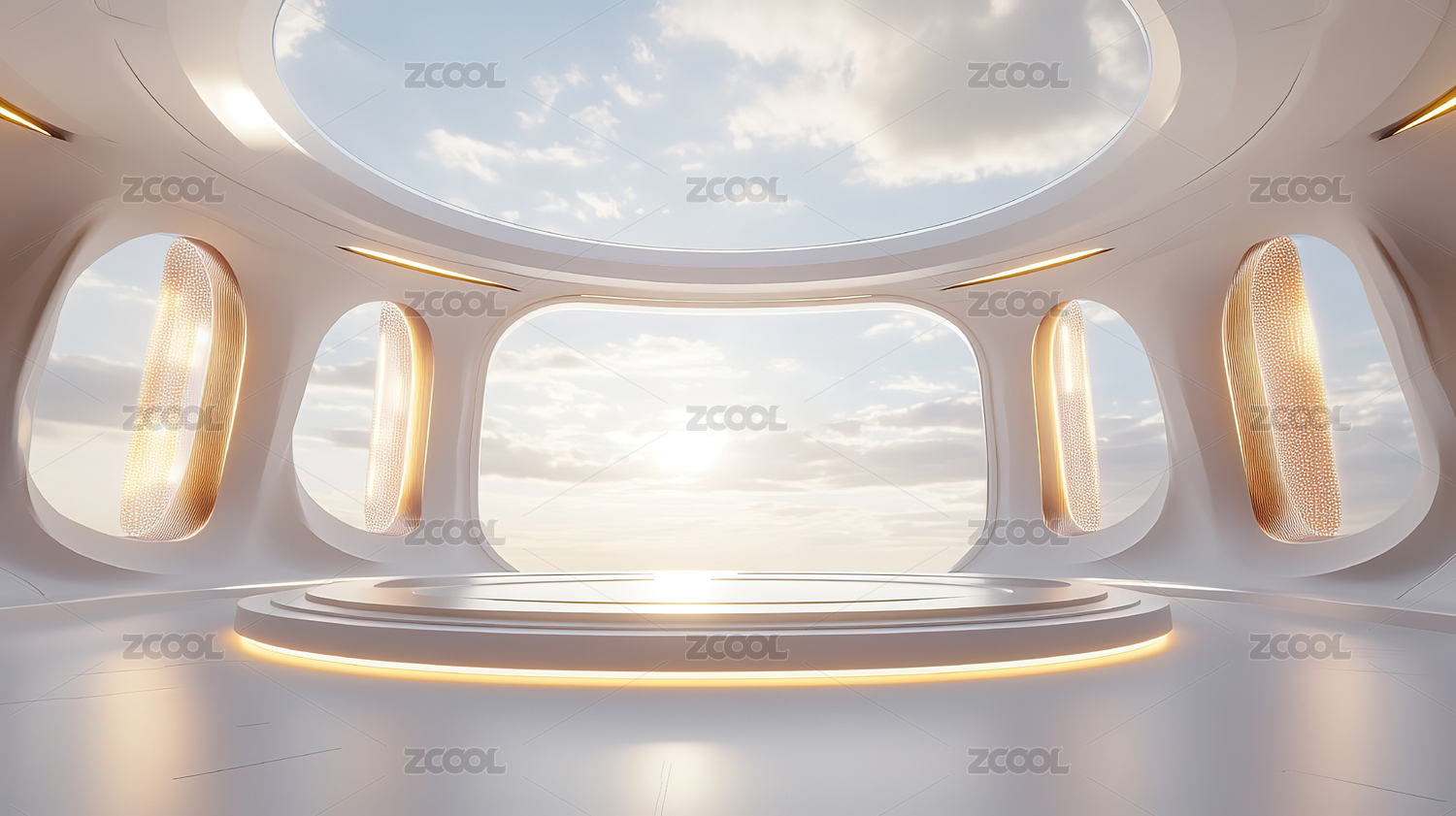 未来感白色建筑内部空间