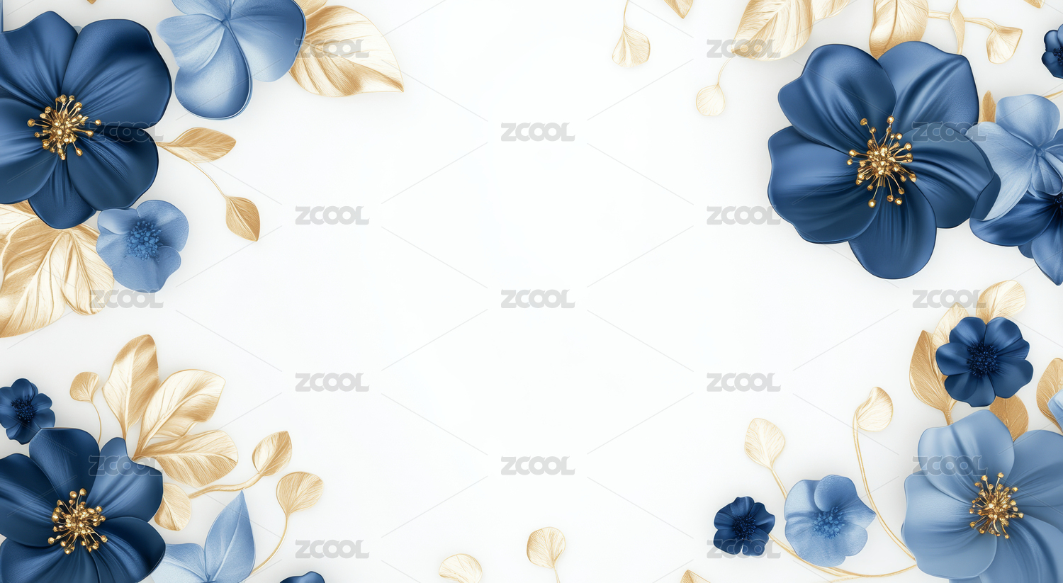 蓝色和白色花卉边框设计