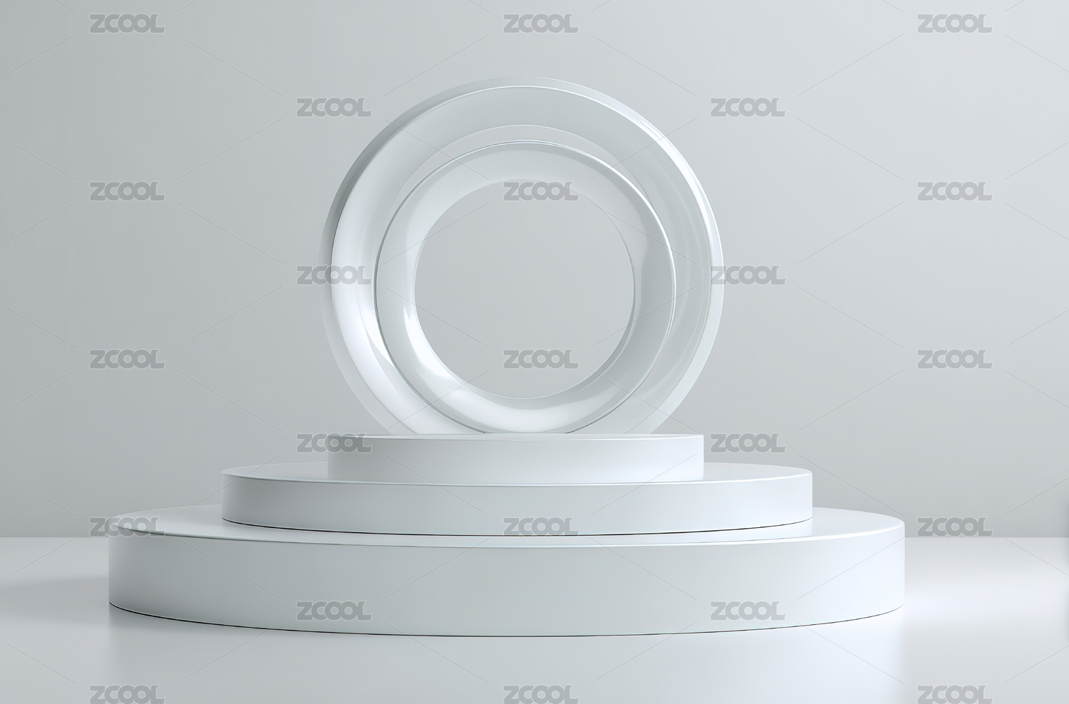 白色圆形平台与环形装饰的极简设计