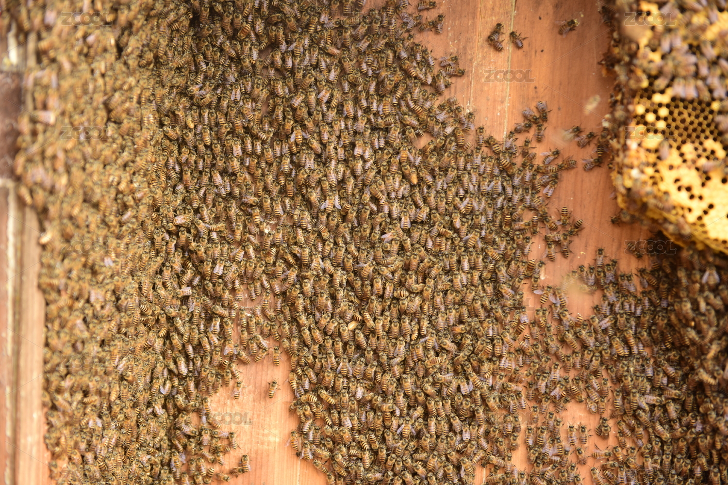 蜂巢上聚集的蜜蜂