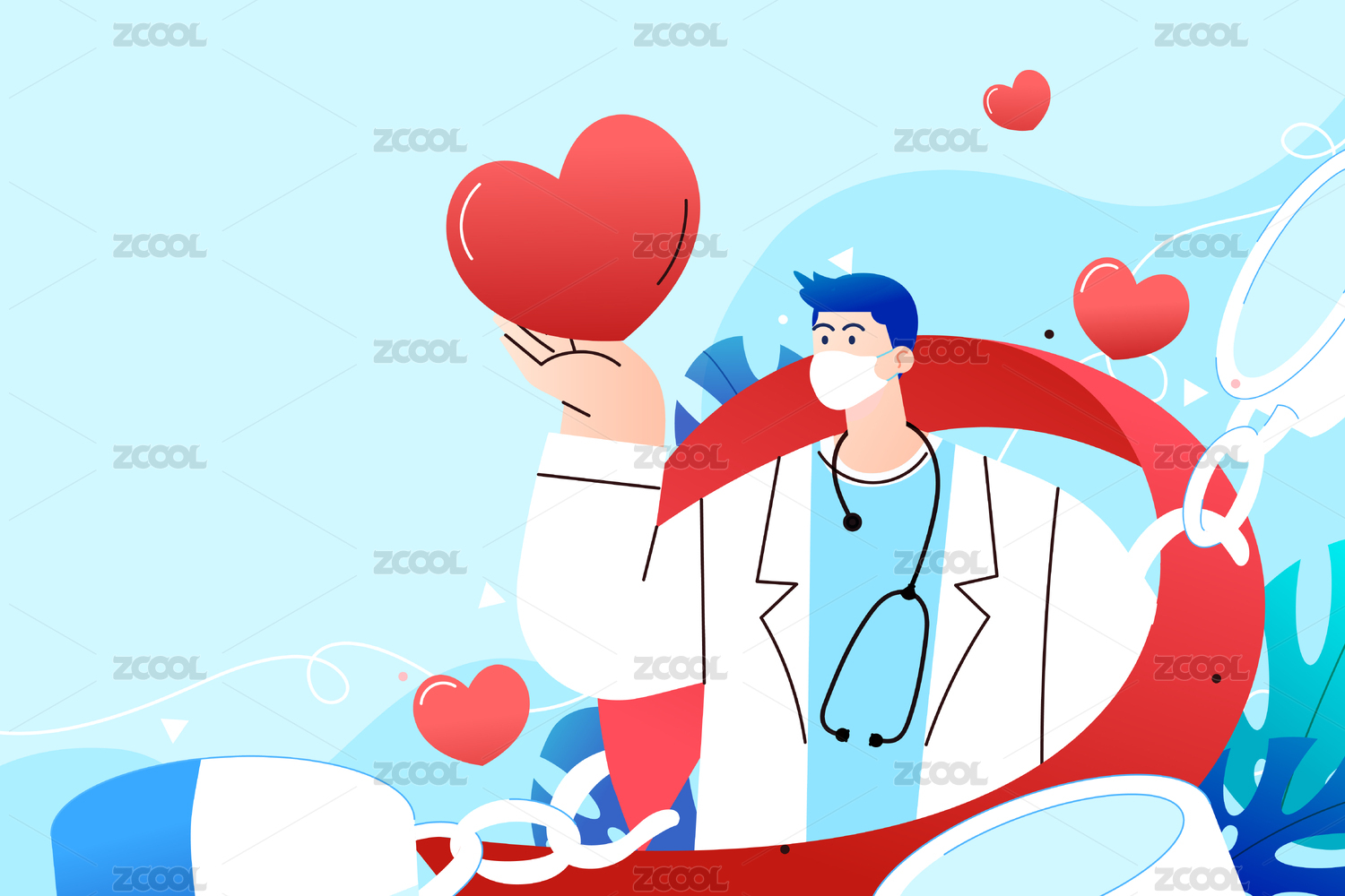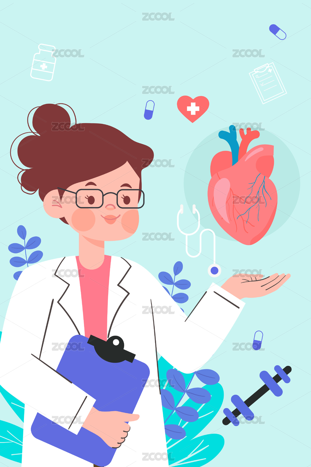卡通手绘心脏病心肌梗塞医疗护理插画