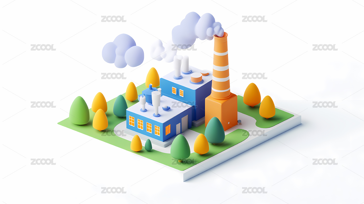 工厂与烟囱3D渲染,工厂工业用于环保环境
