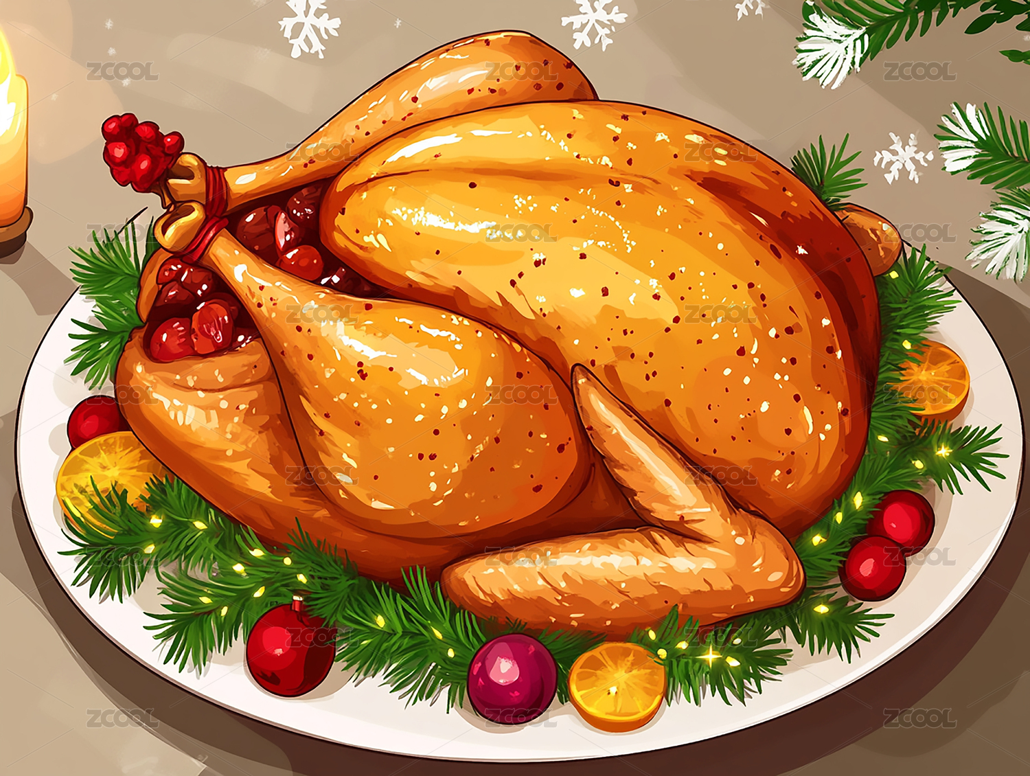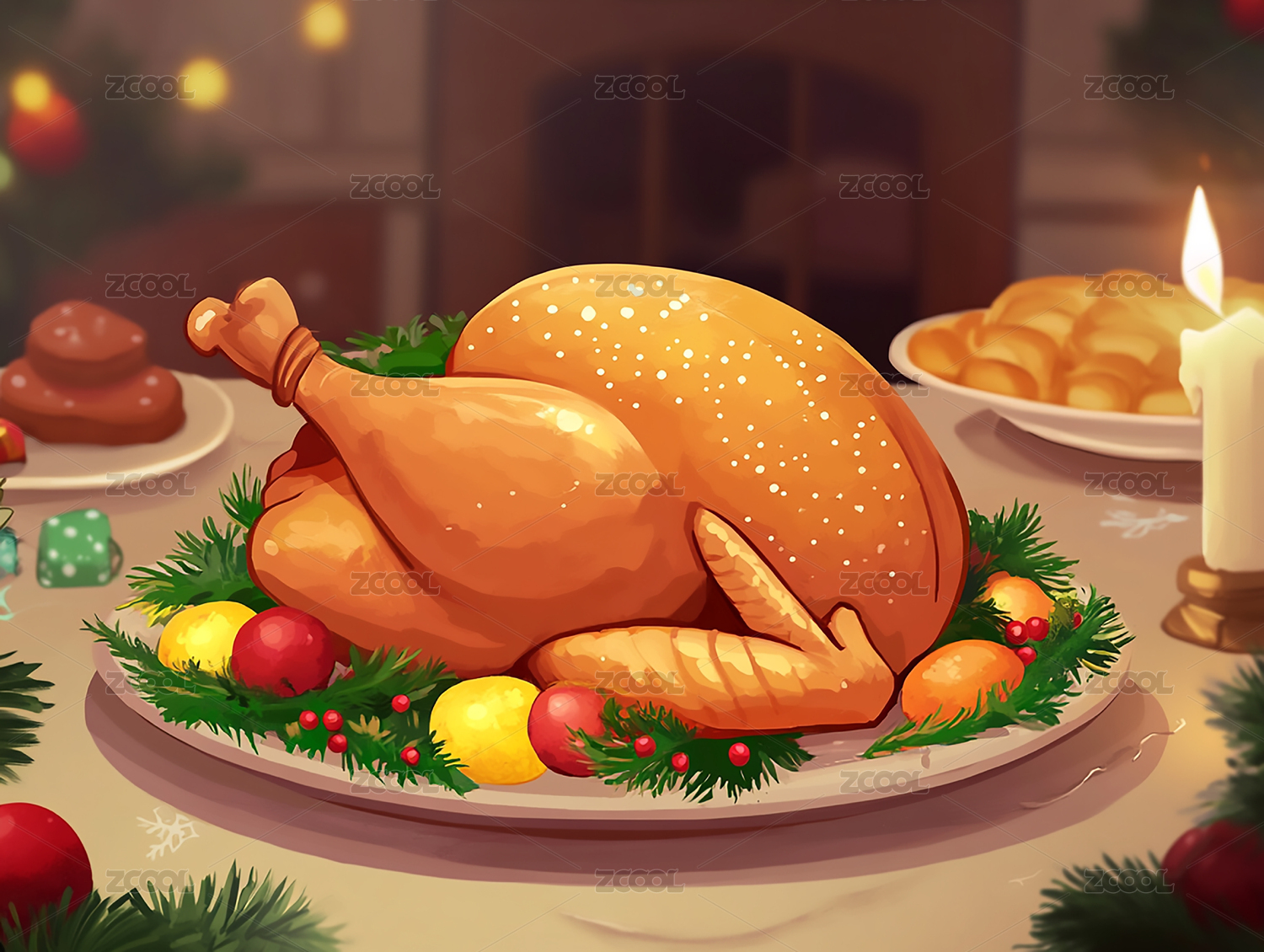 感恩节,火鸡,插画,烤鸡,鸡肉